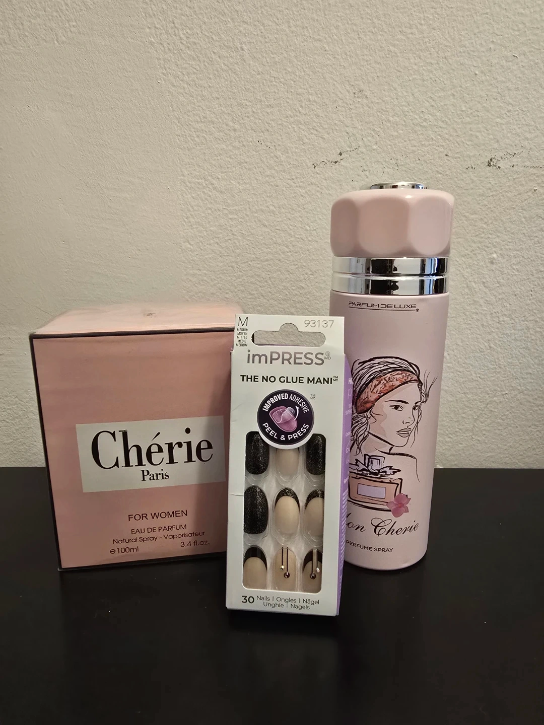 A bundle of Chérie Paris Perfume & imPRESS Nails Set