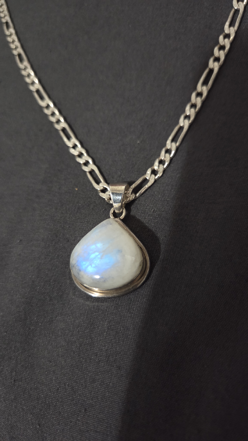 925 sterling Silver diamond cut necklace with Moonstone Pendant