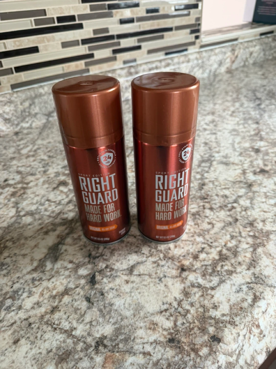 This is a 2-pack of Right Guard Sport Edition antiperspirant deodorant. It's made for hard work with an original scent. Each can contains 5 oz of product. I ordered the wrong ones so who ever want them there yours if u can come pick them up .