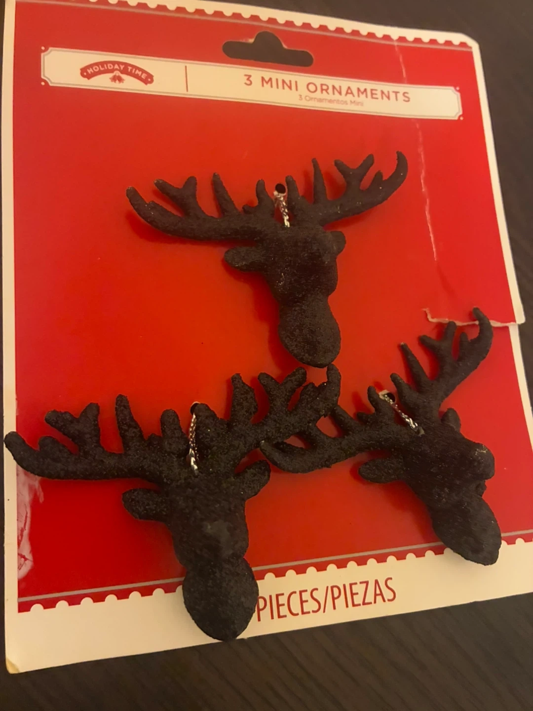 Selling a pack of Holiday Time mini reindeer ornaments! This set includes 3 charming reindeer heads, perfect for adding a touch of holiday cheer to your tree or decorations