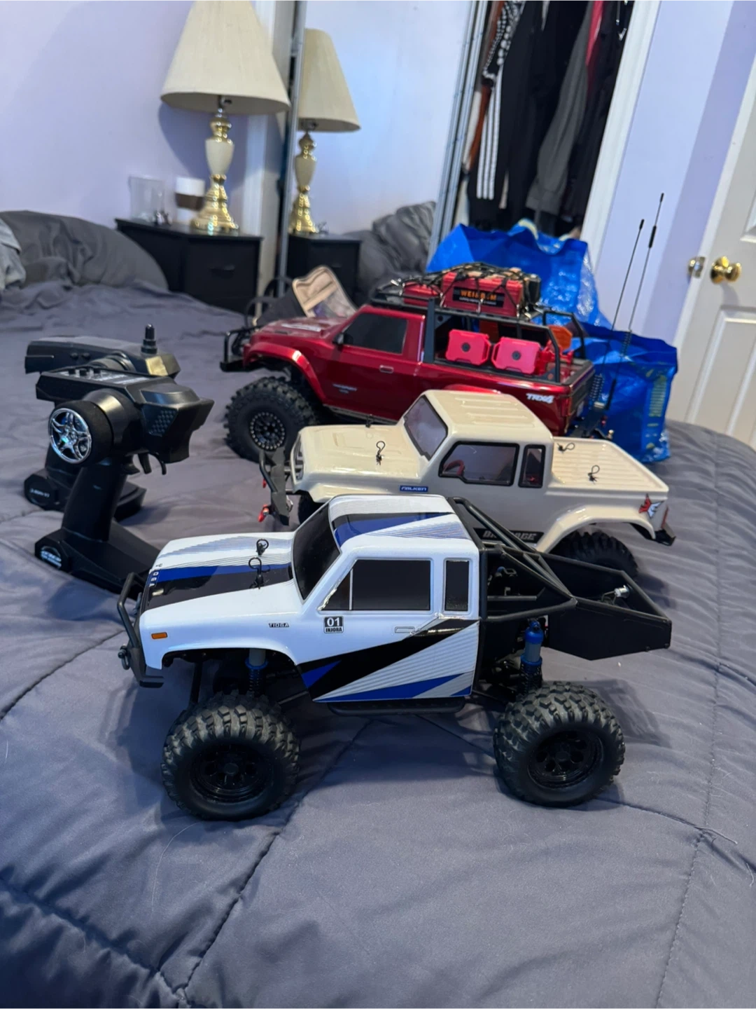 152 Like New 1/12 Trail Scale Trucks RTR Plus New Upgrades! 1 - ECX Barrage Gen 2 Truck RTR Plus new better wheels and tires with foams And a better new Spectrum digital servo installed Includes battery and manual 2 - Team Associated CR12 Tioga RTR with battery also… Has upgraded rear tail lights custom installed! Both trucks have front and rear led lights and are clean and run excellent! Will trade for 1/10 rc electric truck RTR Or…. An IPad Mini 7th Gen WiFi…. LMK Watcha Got Thanks! Marty 347.265.3513