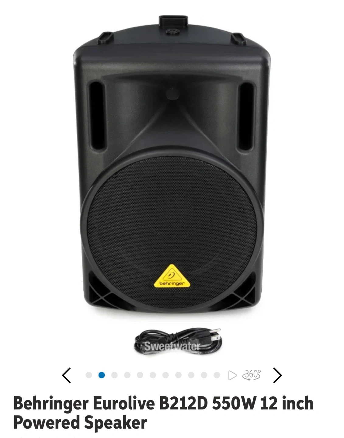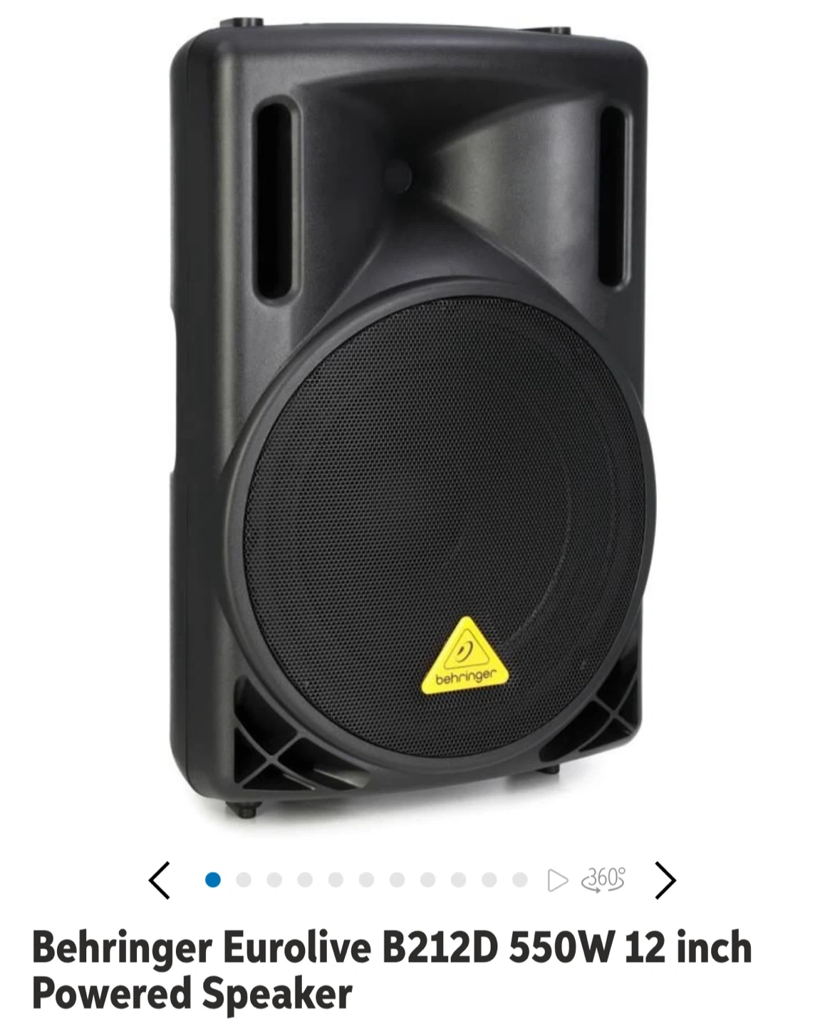 Selling a Behringer Eurolive B212D 550W 12 inch Powered Speaker. It is a 2-Way PA Speaker System with 1.35" Compression Driver. It is 550 Watts with Class-D technology