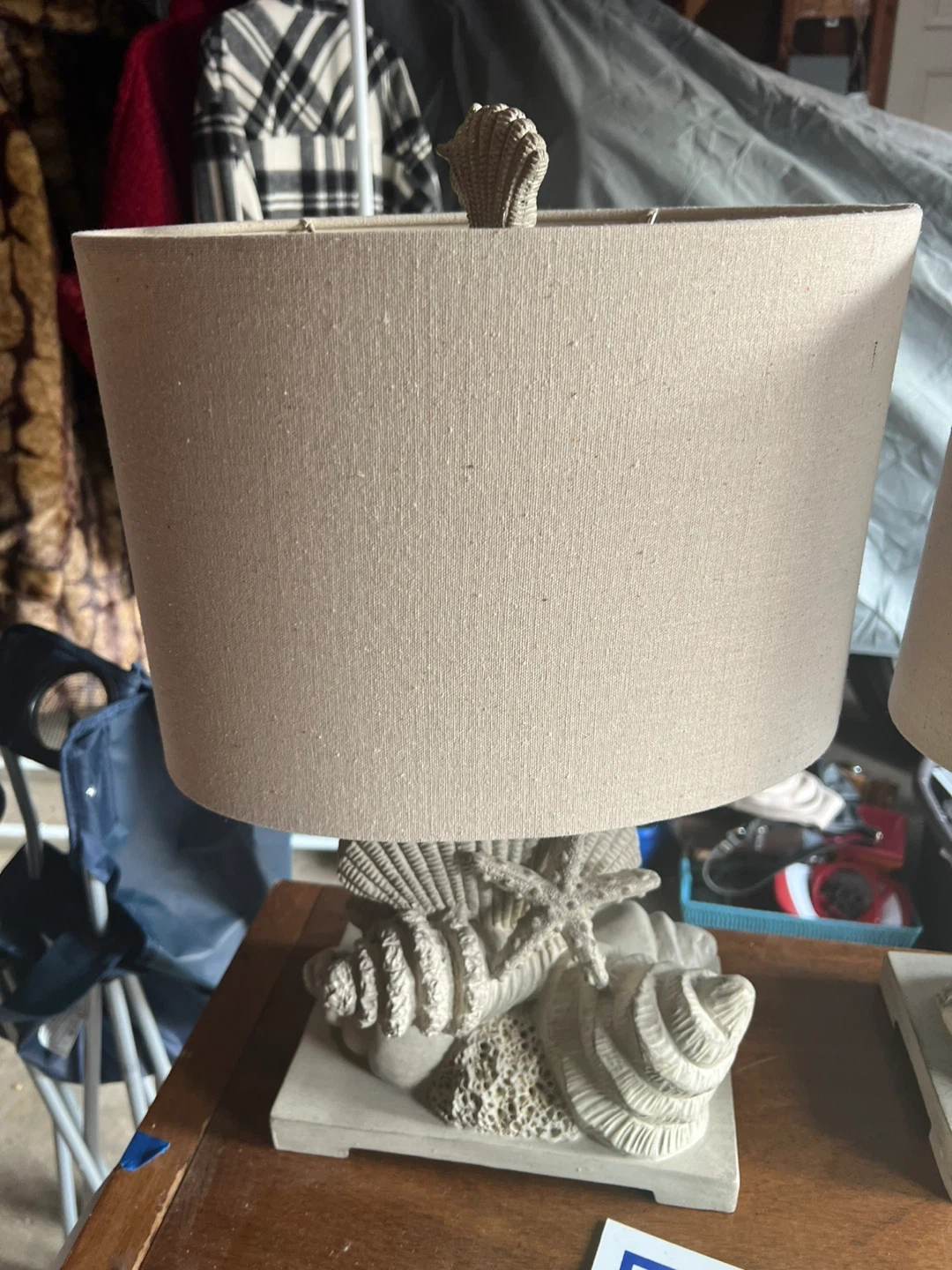 60This is a lovely table lamp from the Cape Home Collection. It features a unique shell design and a neutral-colored shade that would complement any room. It's perfect for adding a touch of coastal charm to your home decor