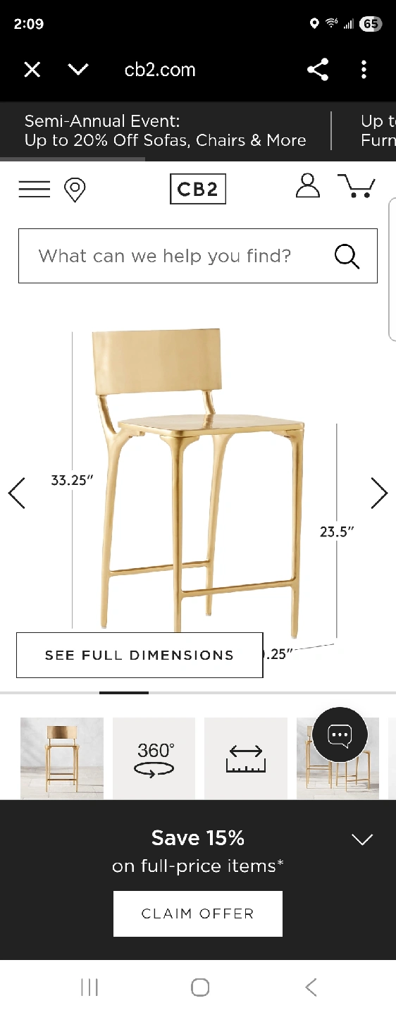 Selling 2 CB2 Oro gold metal counter stool! This stylish stoos are perfect for adding a touch of elegance to your kitchen or bar area. Key Specifications: - Dimensions: 33.25" height, 23.5" width - Material: Metal Originally priced at $549 each, this stools are a great deal. condition NEW and ready for a new home!