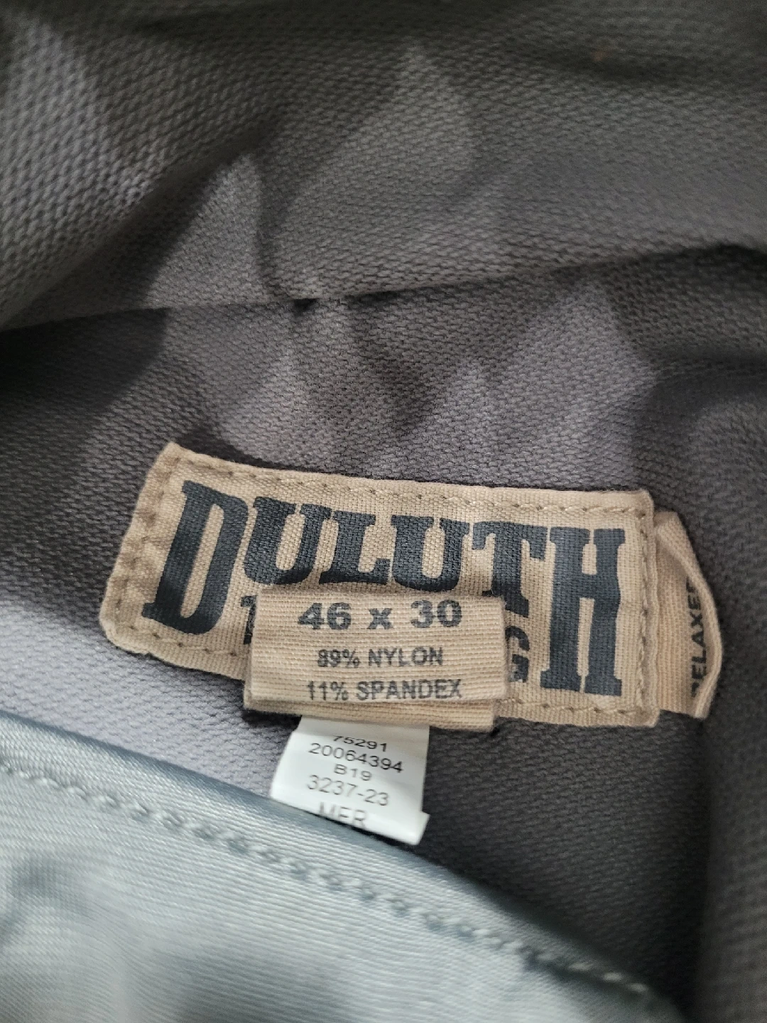 602 pairs Duluth Flexpedition Mens 46x30 Gray green Relaxed Fit Cargo pants nice condition. no rips, stains or holes