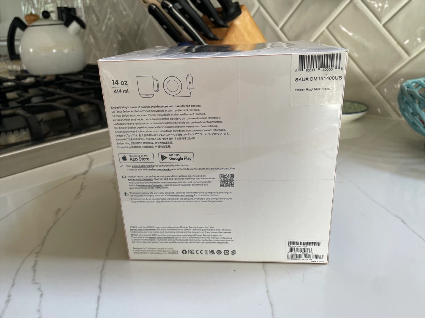 Selling 2 new 14oz Ember Mug² in black and white. Black is still in original box. This smart mug keeps your drink at the perfect temperature. The Ember Mug² is made of durable stainless steel with a reinforced coating. Safe to hand-wash and fully submersible in up to 1 meter deep