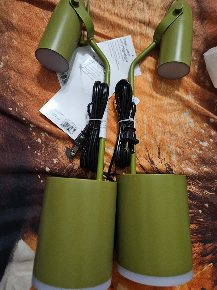 Selling a pair of green task lamps that also have a nightlight feature. Also they have charging portals. They are in great condition and ready to brighten up your space! PICK UP ONLY