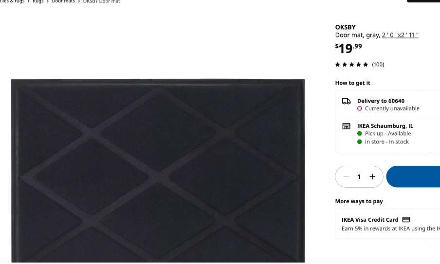 2 IKEA OKSBY Gray Door Mats 2' x 2'11"