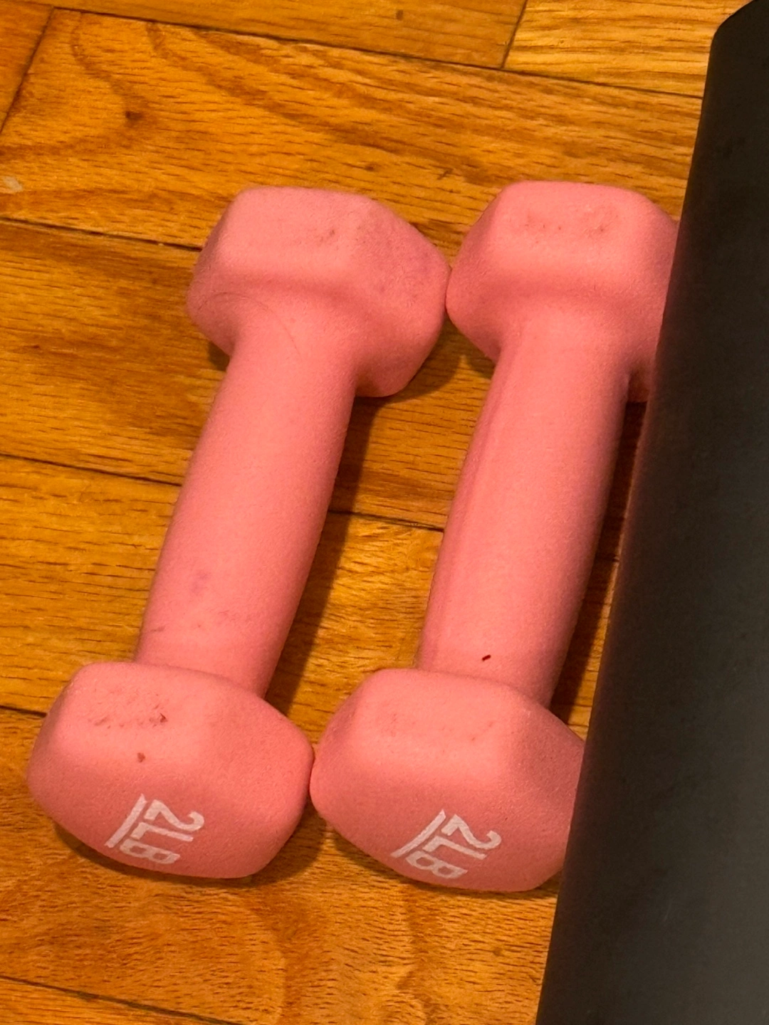Selling a pair of 2 lb dumbbells. They are pink and in good condition!