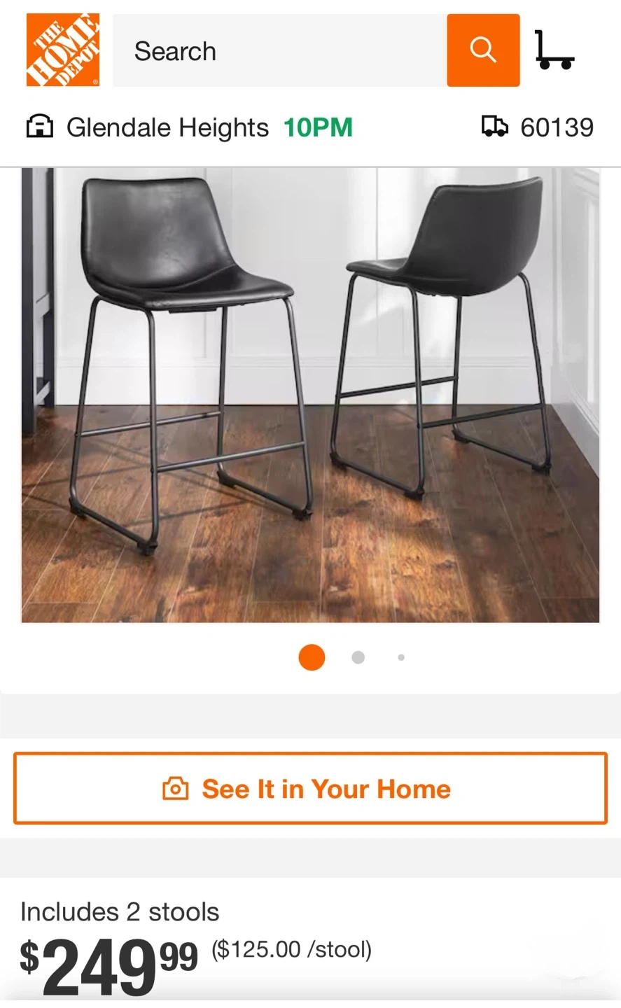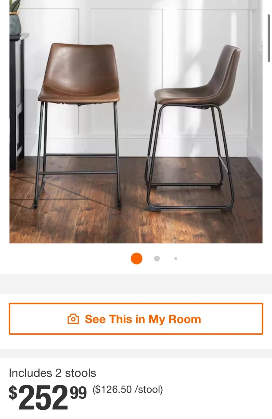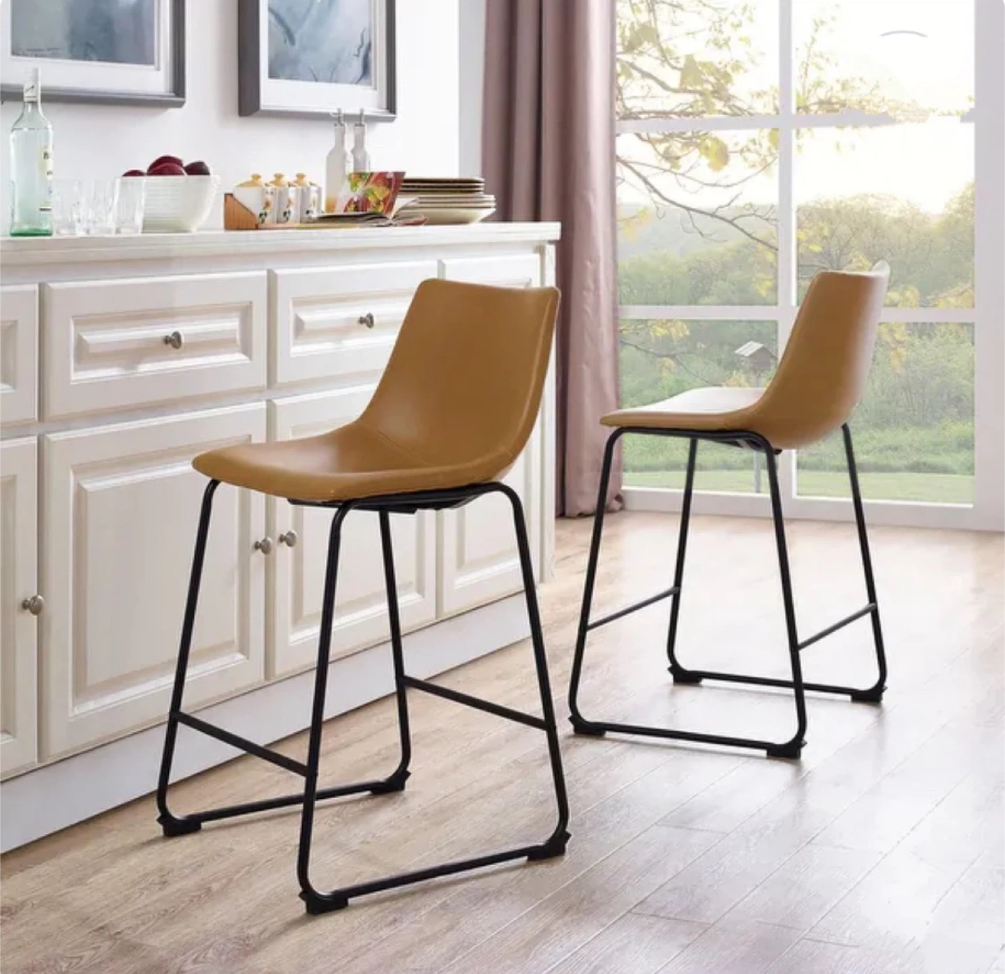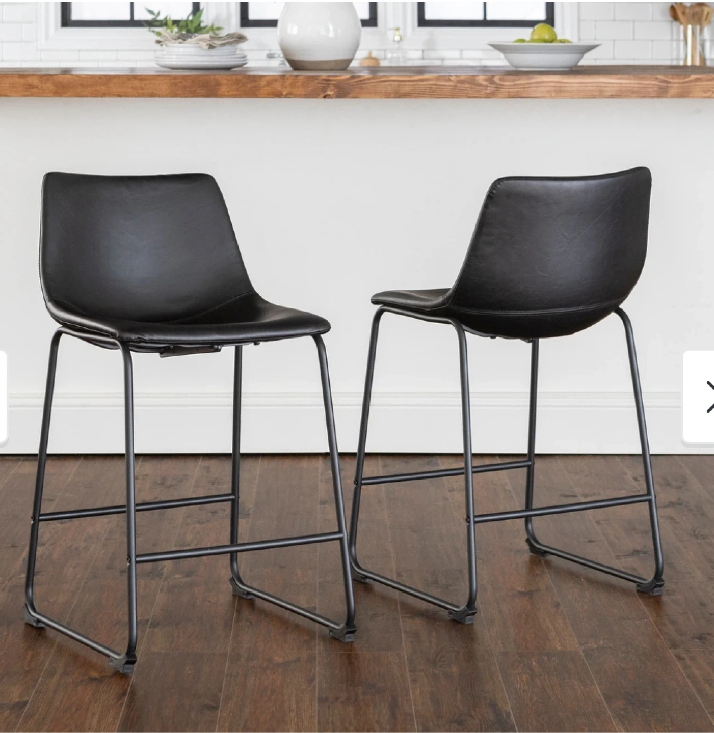 1722 New Counter Height Stools - Choice: Black, Brown or Whisky Brown * Excellent Reviews!! * Excellent Condition * Dimensions: 18” W x 22” D x 40” H * Sleek and sturdy urban style * Bucket seat with detailed stitching * Integrated footrest and floor protectors * Already Assembled! * Verified/Trusted Seller Read My Reviews!