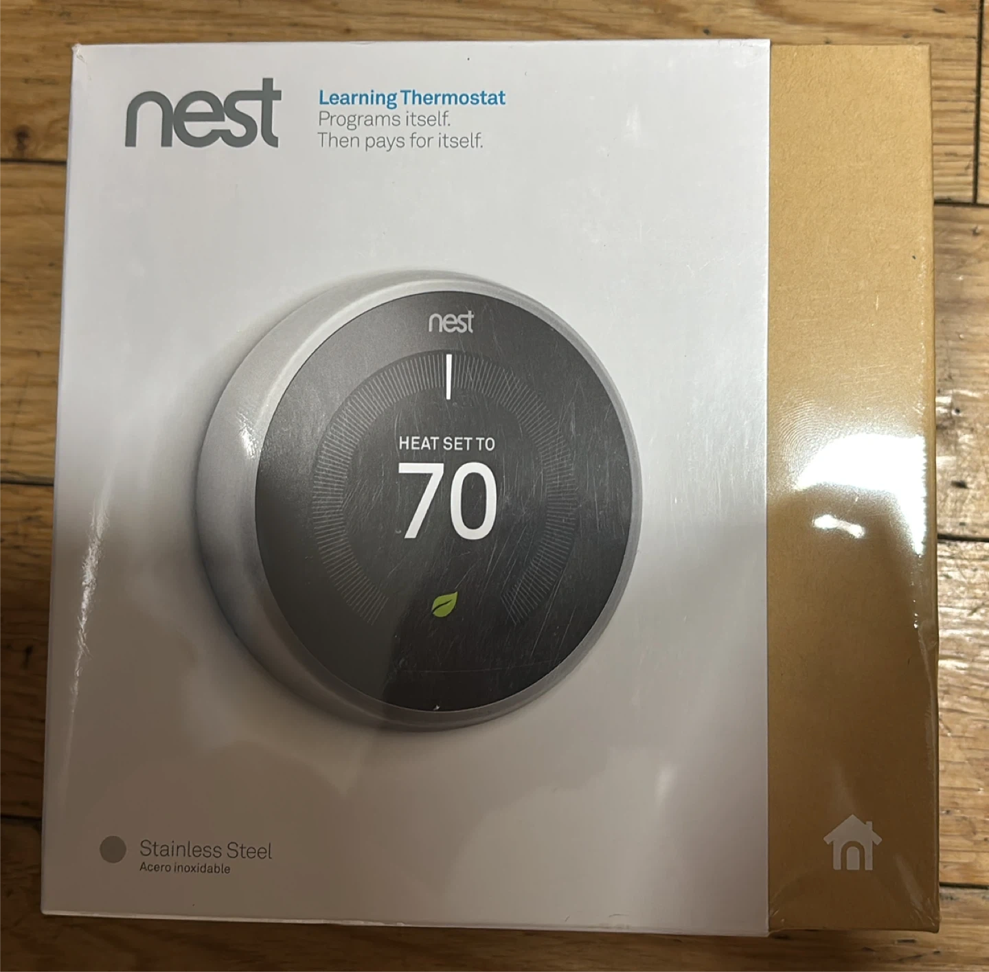 71Selling a never used Nest Learning Thermostat 3rd generation in stainless steel! It's still in the original packaging. This thermostat programs itself and learns your habits to help save energy. It is a learning thermostat and pays for itself.