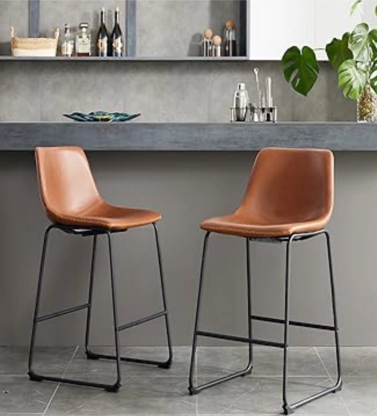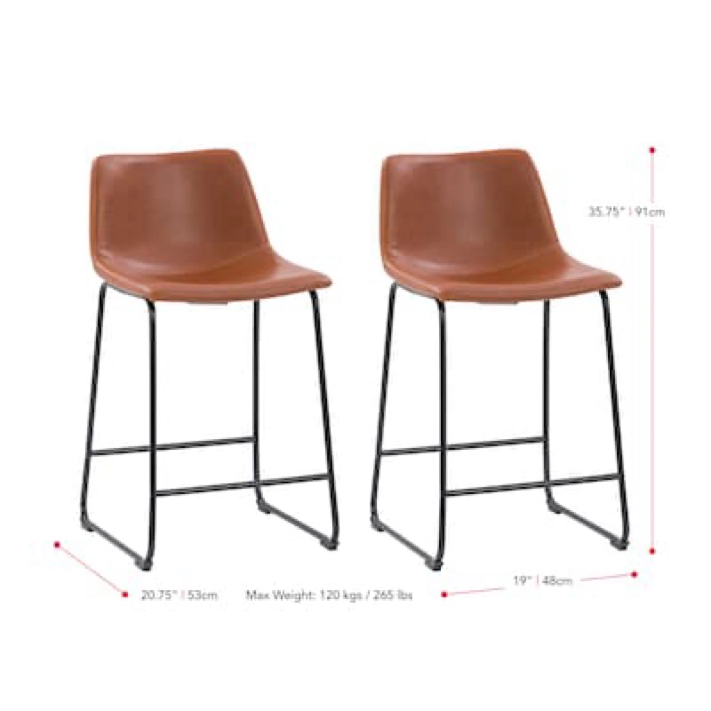 Whisky Brown Faux Leather Bar Stools (Set of 2) - 29-3/8 in. Dimensions: 18” W x 22” D x 40” H New In The Original Box/Excellent Condition Verified/Trusted Seller Read My Reviews!