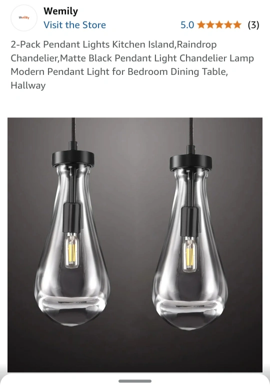 Modern pendant lights, matte black finish. Glass raindrop design. Ideal for kitchen island, bedroom, or dining table. Height adjustable. 2-pack.