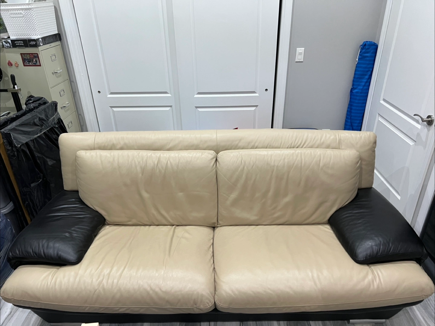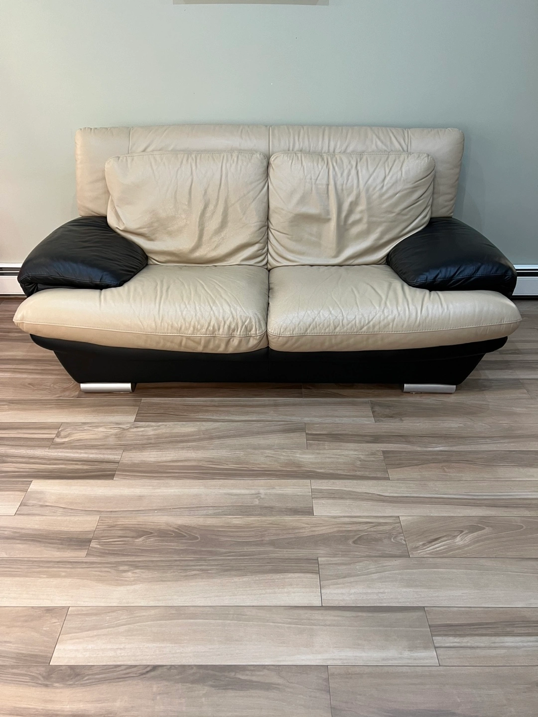 Hello everyone, here I have a couch and loveseat up for sale that I no longer need. The couch and loveseat are both in great condition and show no tears or rips with minimal wear. Both pieces are real double thickness leather. Feel free to send reasonable offers, thanks for looking! Smaller couch (Loveseat) Dimensions: 70 inch length 40 inch width 34 inch height Larger Couch Dimensions: 84 inch length 40 inch width 34 inch height