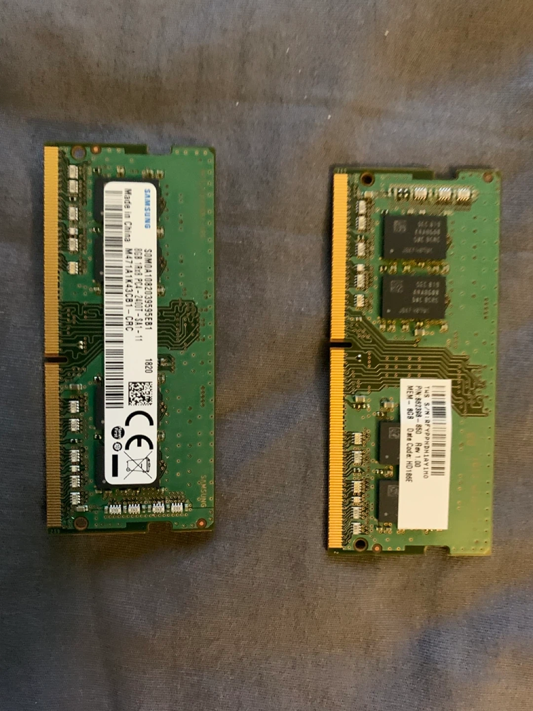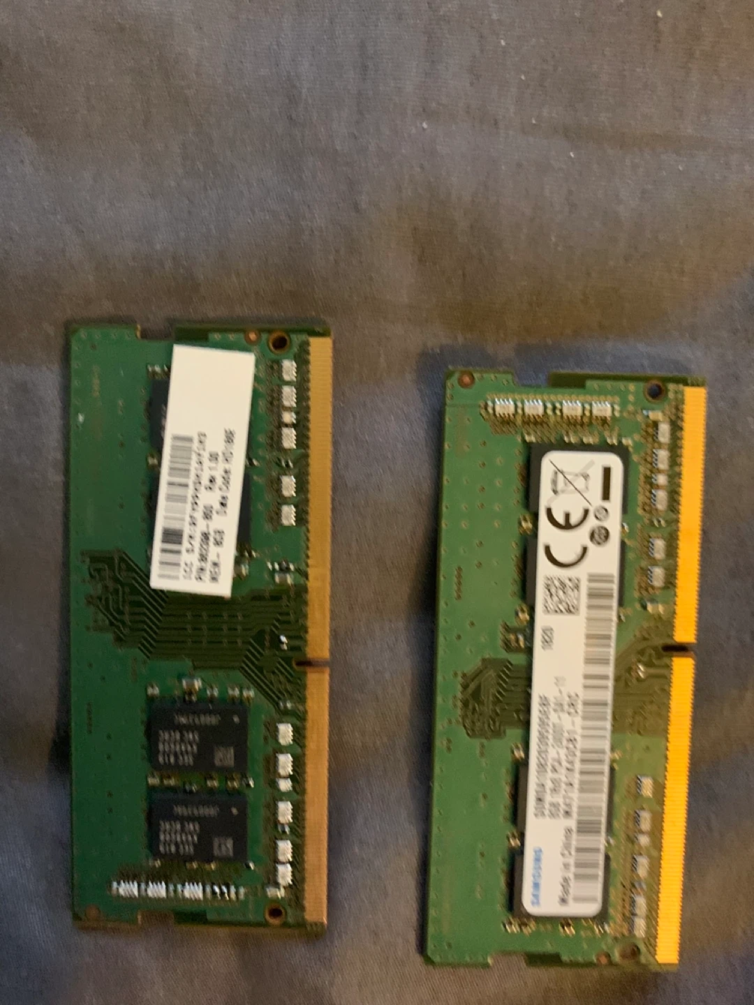 65Selling two Samsung 8GB DDR4 SODIMM RAM sticks. This is computer memory for laptops or small form factor PCs. Check the model number M471A1K43CB1-CRC to ensure compatibility with your device!