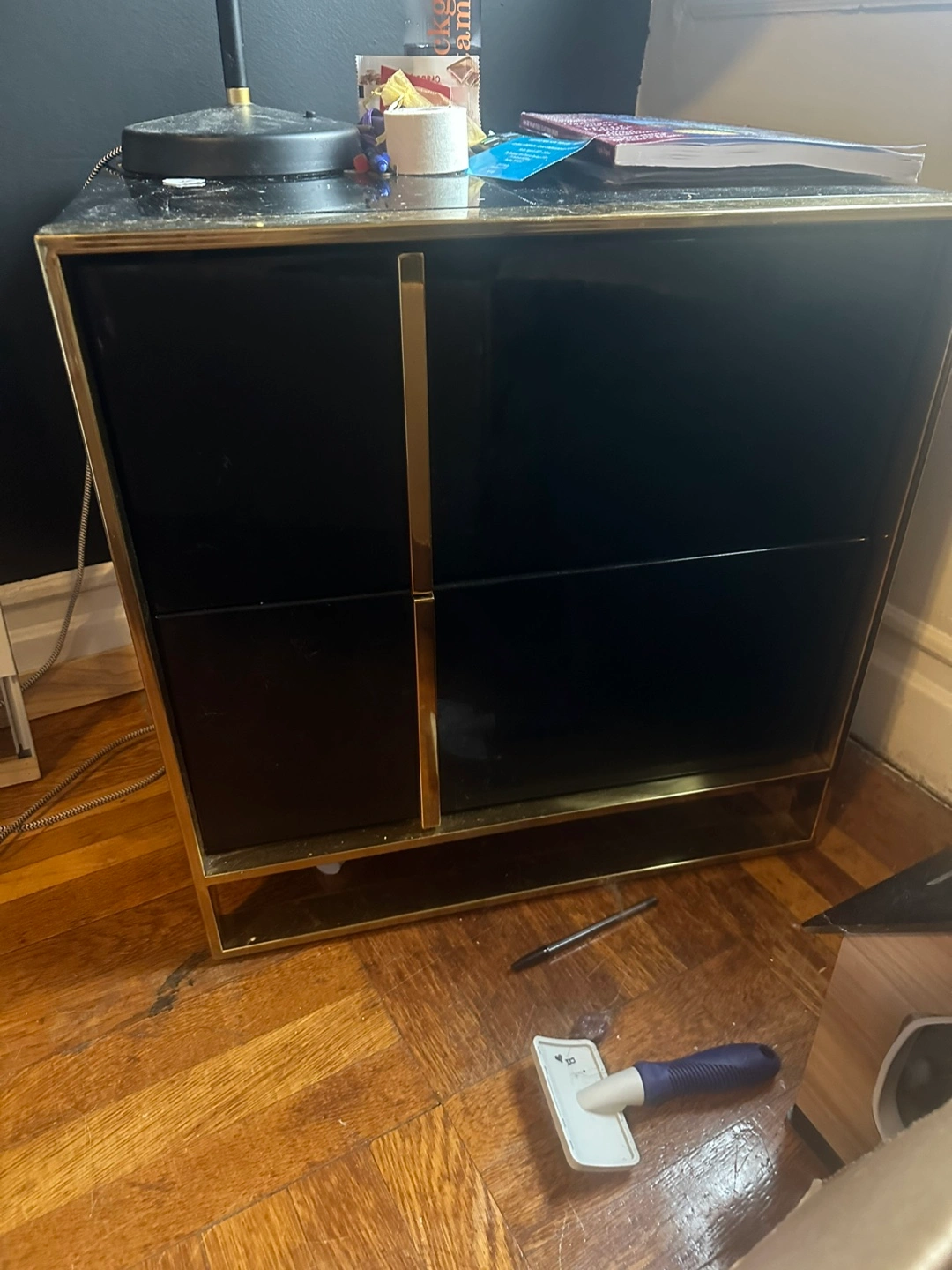 Stylish Black Dresser with Gold Accents