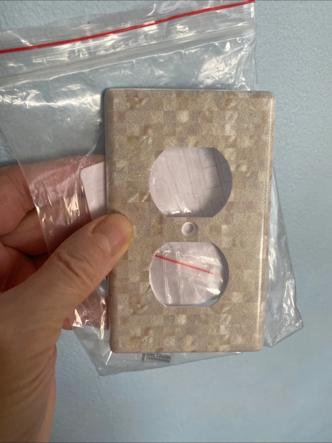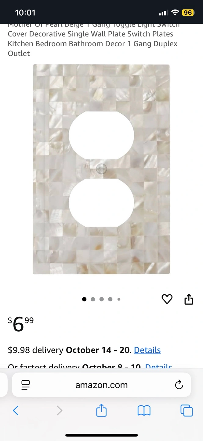 One plain white outlet cover. One pretty patterned mother of pearl Price includes for both