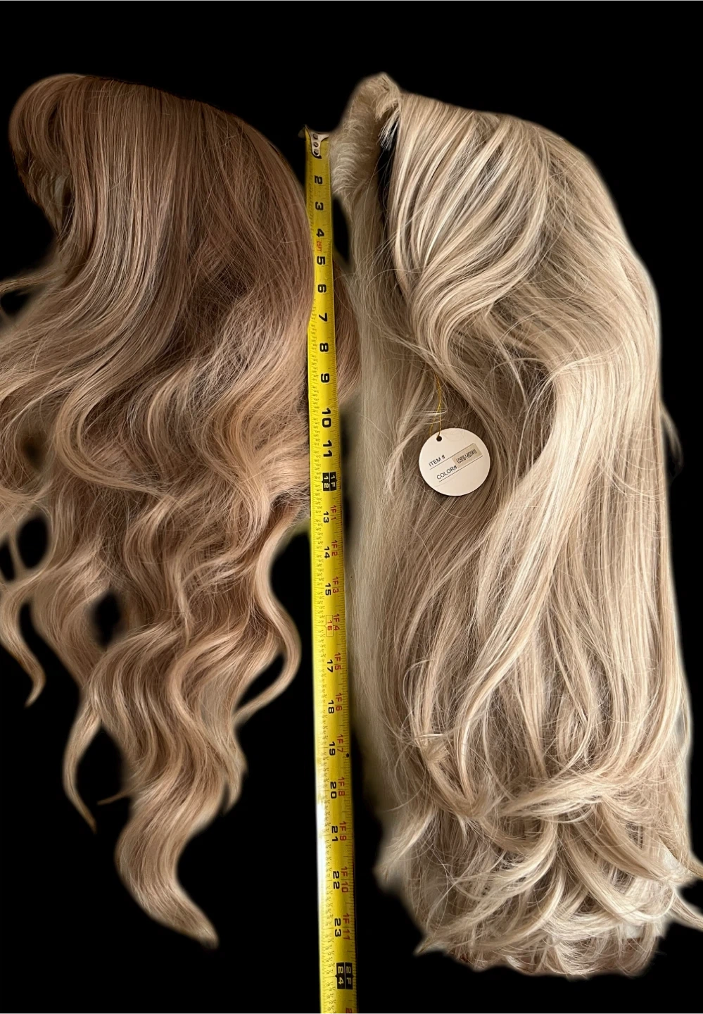 387Selling a 2 wig. It is about 22 inches long. See photos carefully one is new with tag