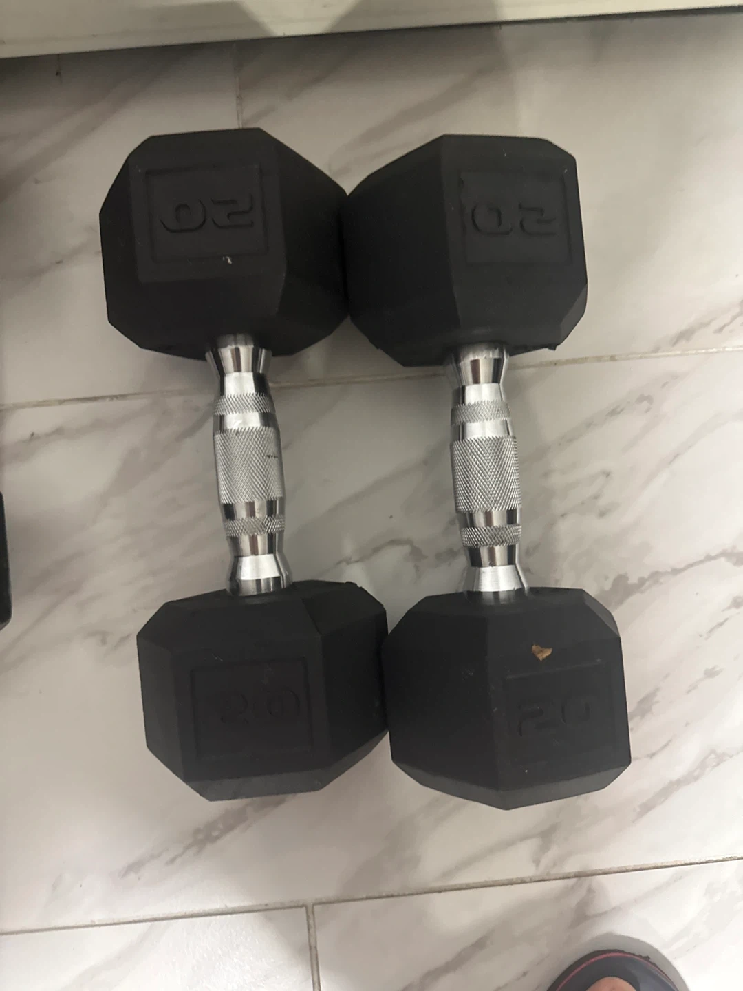 Selling a pair of 20 lb hex dumbbells. They're in good condition and ready for your next workout!