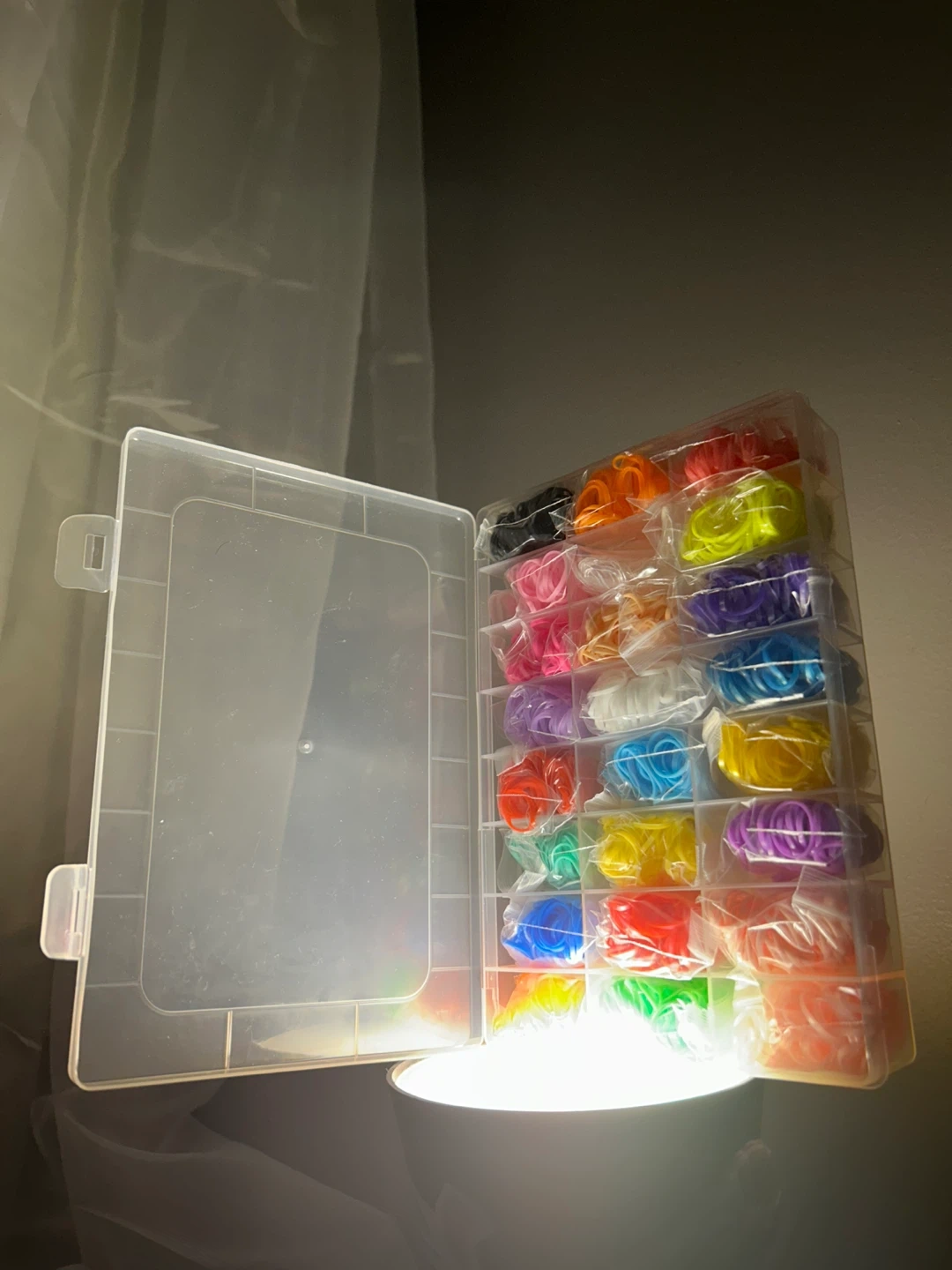 10Around 100 pcs of each 24 colors (one is clear). The top lock of the box is broken but the bottom part works as shown in the pic. Am flexible to meet elsewhere, let me know. Originally a gift for someone but got them something else instead. I’m trying to just get rid of it!