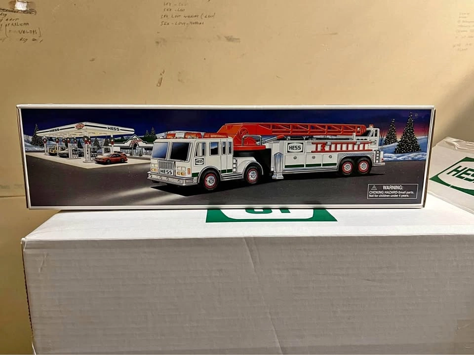60This is a brand new 2000 Hess Toy Fire Truck, still in its original box. This collectible item features the iconic Hess branding and is part of the Gas & Oil theme. The truck is an original production and is in mint condition, ready to be added to your collection. The featured refinement on this item is the Hess Toy Truck, making it a must-have for any collector of gasoline and oil memorabilia. This vintage fire truck is a great addition to any collection and is sure to impress any fan of the Hess brand. Price is per truck