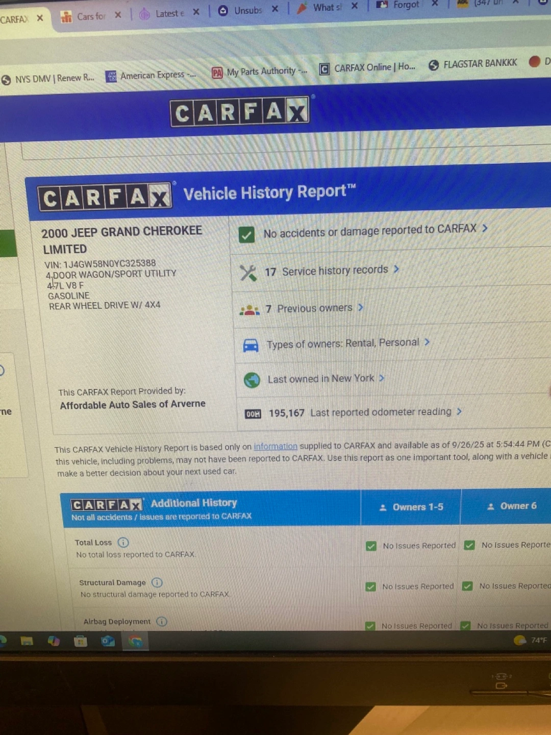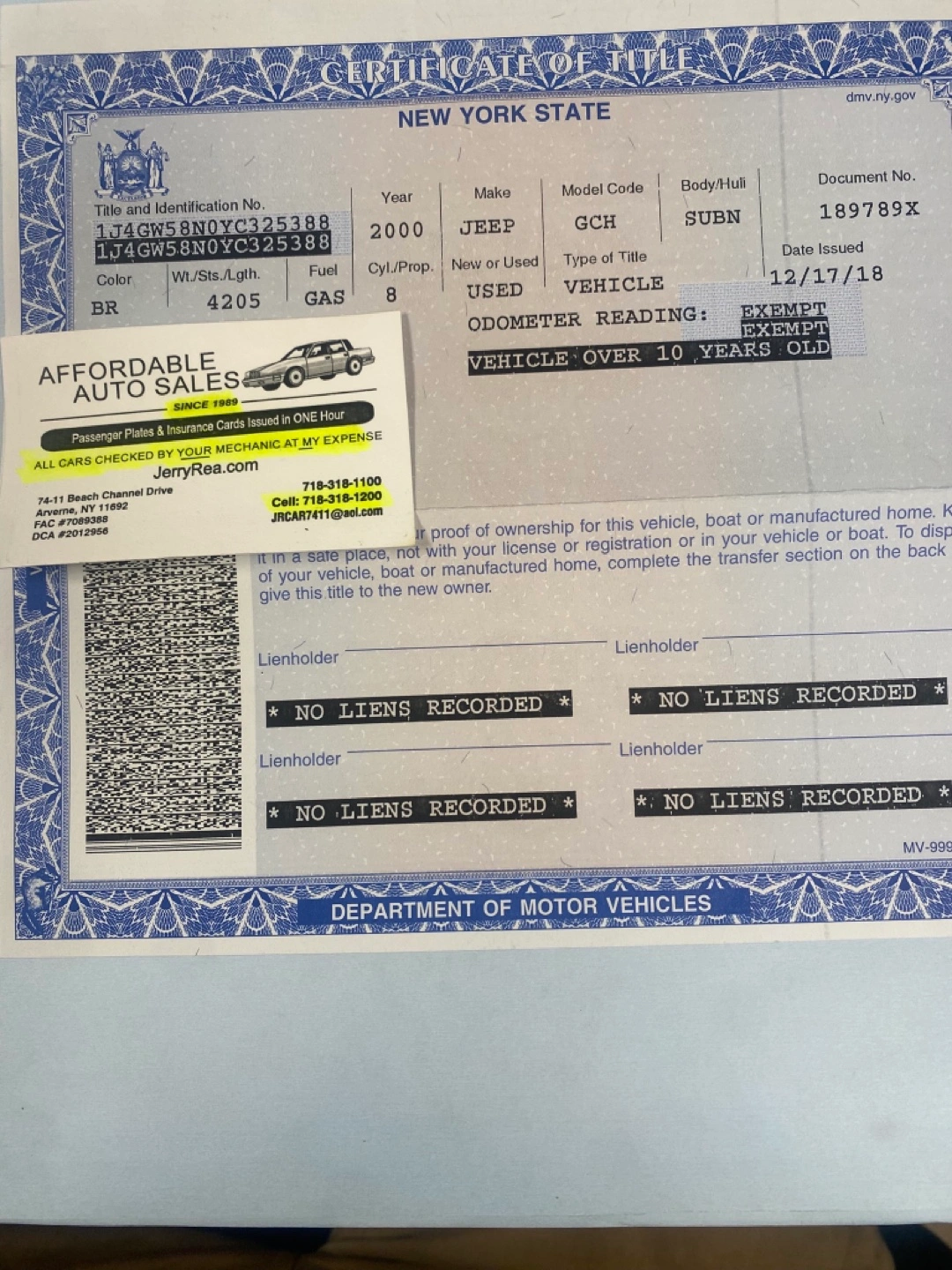 Selling a 2000 Jeep Grand Cherokee. It has a V8 engine and is a gray color. The car has some rust on the undercarriage and the rear hatch lifts. Feel free to message me if you're interested! 718-318-1200