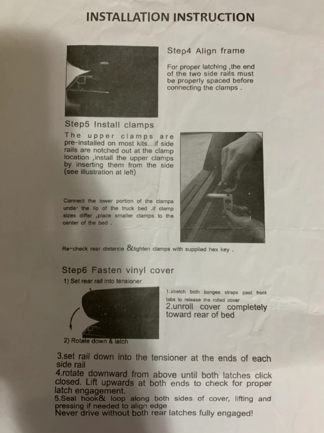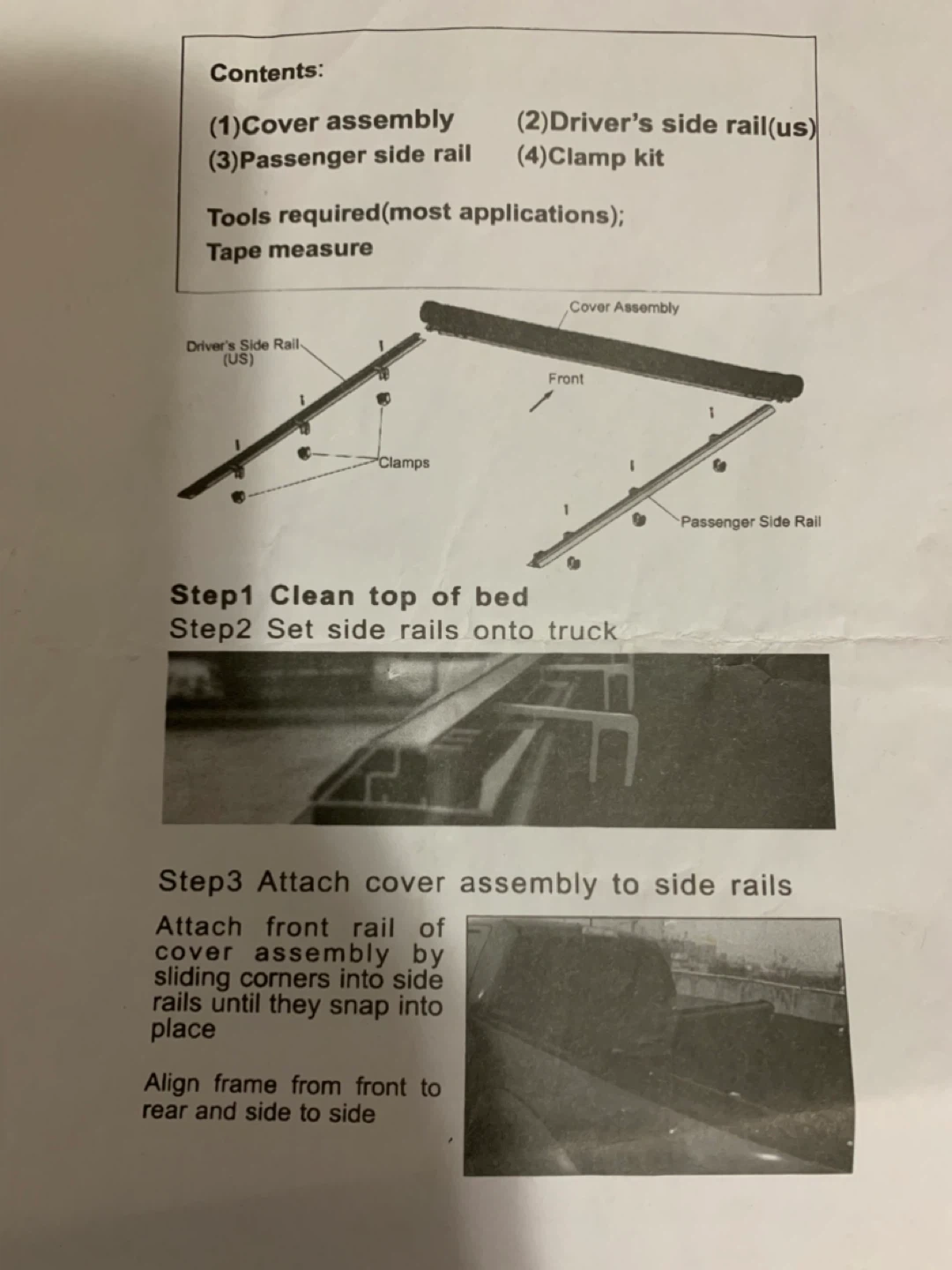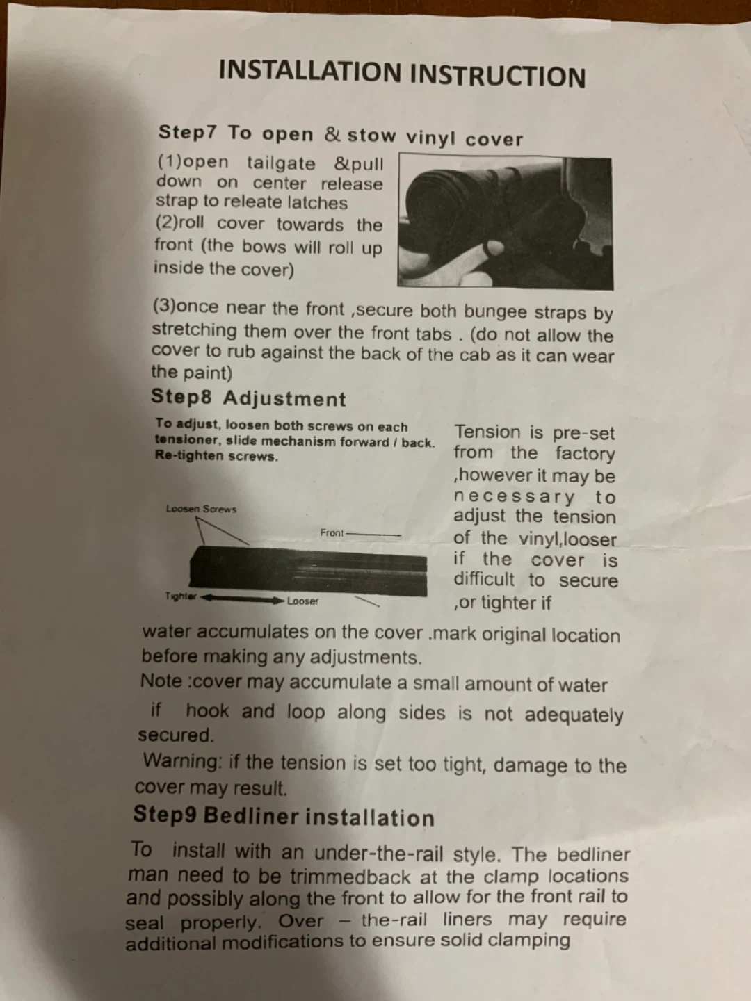 Selling a Best Way roll-up tonneau cover for a truck bed. It includes the cover assembly, driver's side rail, passenger side rail, and clamp kit. Please refer to the installation instructions for proper setup