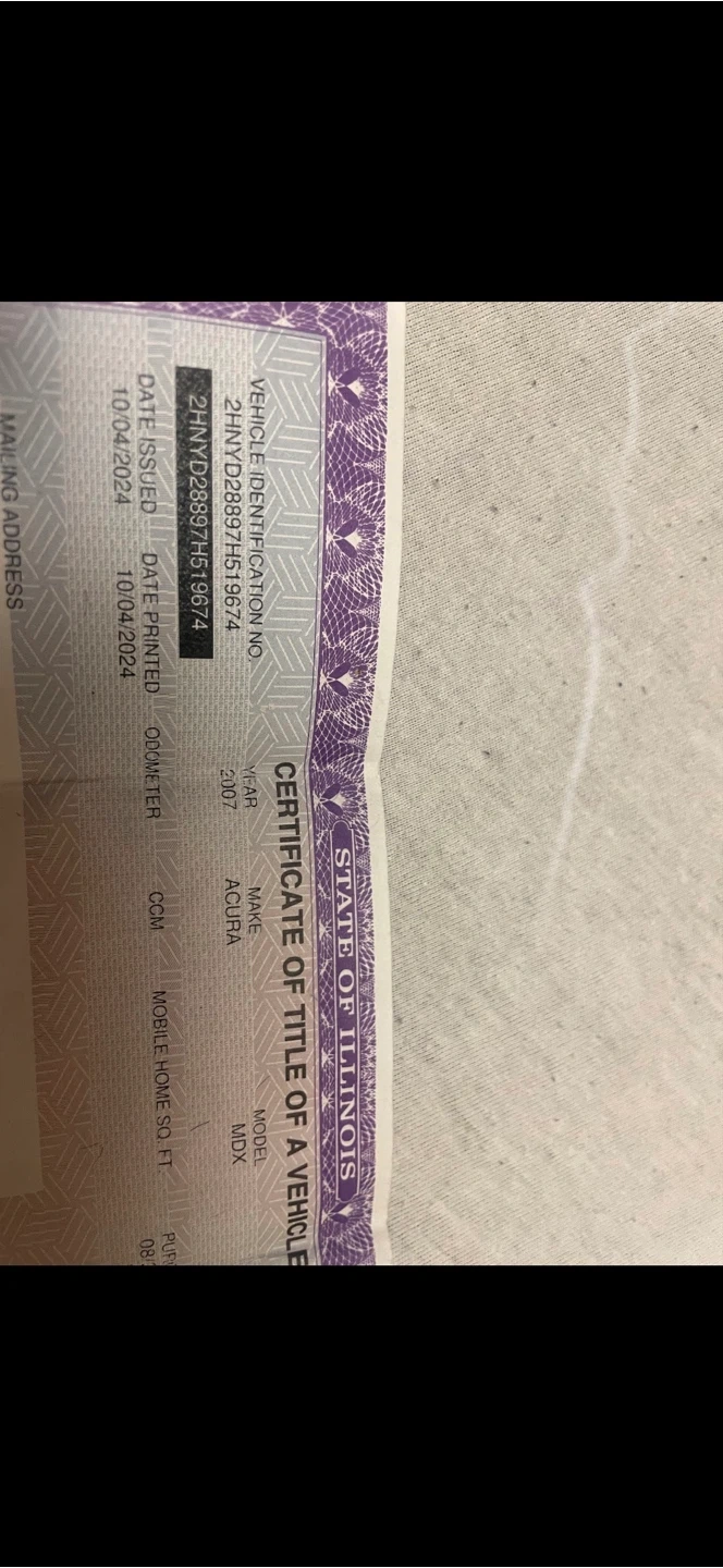 Im selling 2007 Acura MDX with AWD , technology package which includes DVD REAR ENTERTAINMENT. Sunroof It has navigation with SH-AWD . It has 3 rows . Front Struts and cv axles new . Tires are good 4,000 obo . Title in hand
