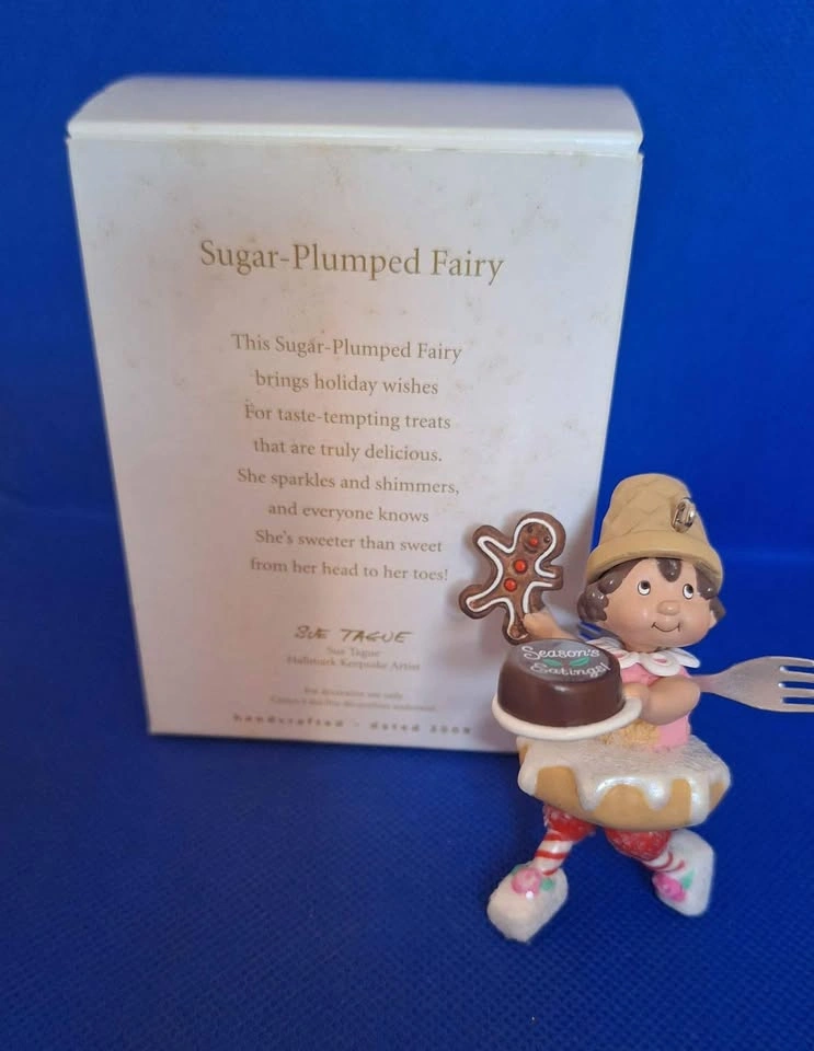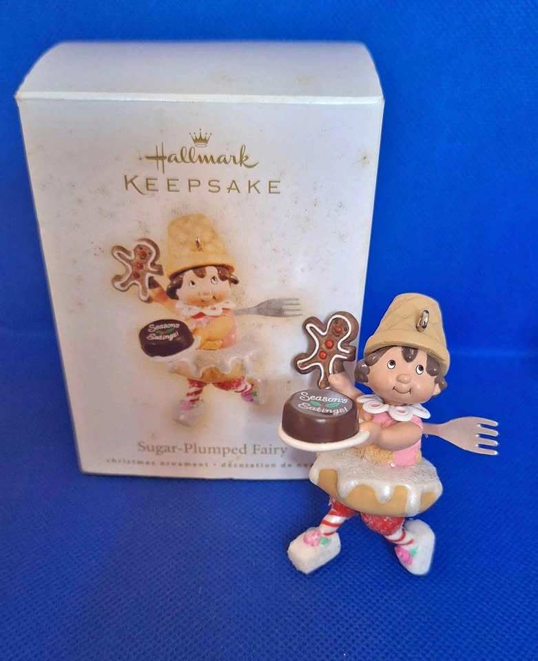 Celebrate the magic of Christmas with this enchanting 2009 Hallmark Keepsake Ornament. Featuring a sugar-plumped fairy baker, this multicolor ornament is made of durable plastic and measures 2¾" H. The fairy's whimsical wings and charming hat make this ornament a perfect addition to any Christmas tree or fairy-themed collection. This Hallmark ornament is part of the "Ornaments" collection and is produced using resin techniques in China. It comes with a hanging feature and is perfect for anyone who loves fairies and Christmas decorations.
