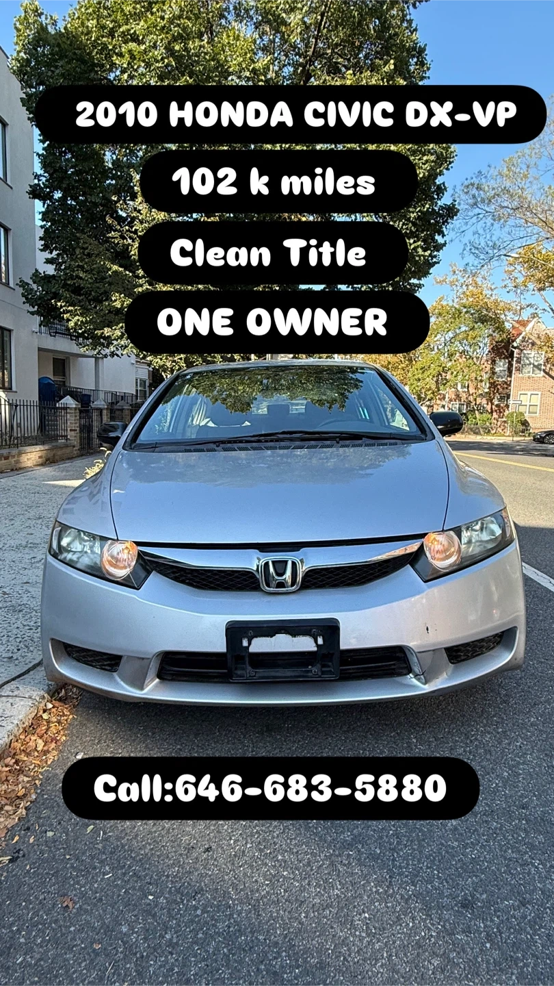 2010 HONDA CIVIC DX-VP 102k Original Miles ****Clean title**** *ONE OWNER* clean car fax’s no accidents I have carfaxs if you need it runs and drives great! This car is spotless Fresh oil change and 4 new winter tires included , and much more, SEDAN 4 DR 1.8L 16V GASOLINE 3 keys included. $5,995 CASH PRICE