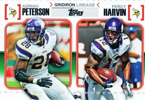 65The 2010 Topps Gridiron Lineage #GLPH Adrian Peterson/Percy Harvin Vikings trading card is a single original card manufactured by Topps Co. featuring football players Adrian Peterson and Percy Harvin from the Minnesota Vikings. This modern era card is near mint/mint condition and is a valuable collectible for fans of these star athletes.