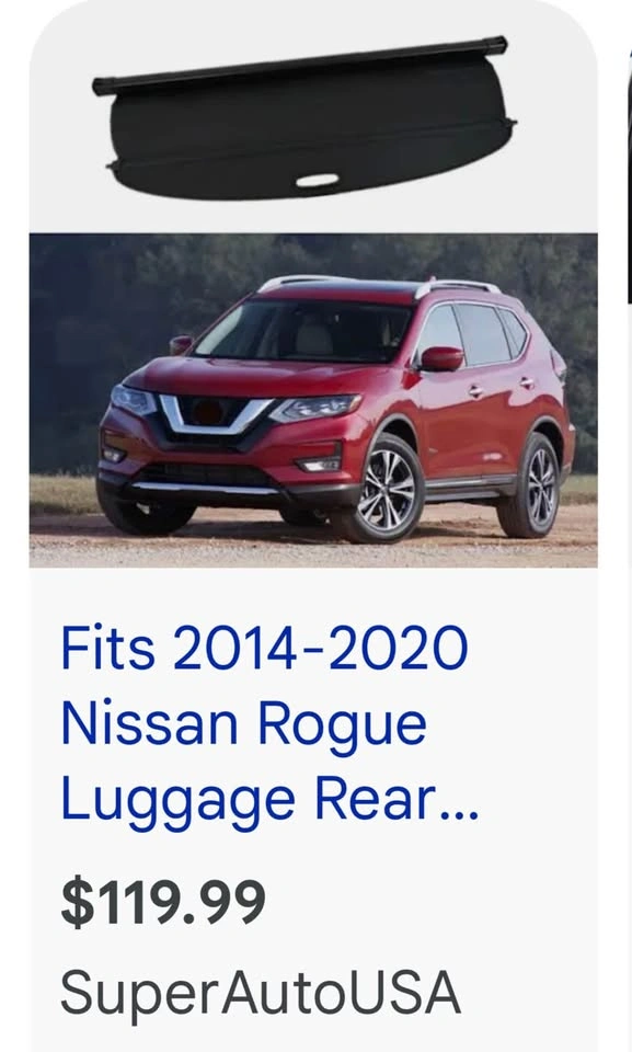 52017–2018 Nissan Rogue accessories: * Retractable cargo cover $50 * (3) OEM Nissan 2017-2018 car fobs $30 ea or all three for $75. Selling because sold vehicle.