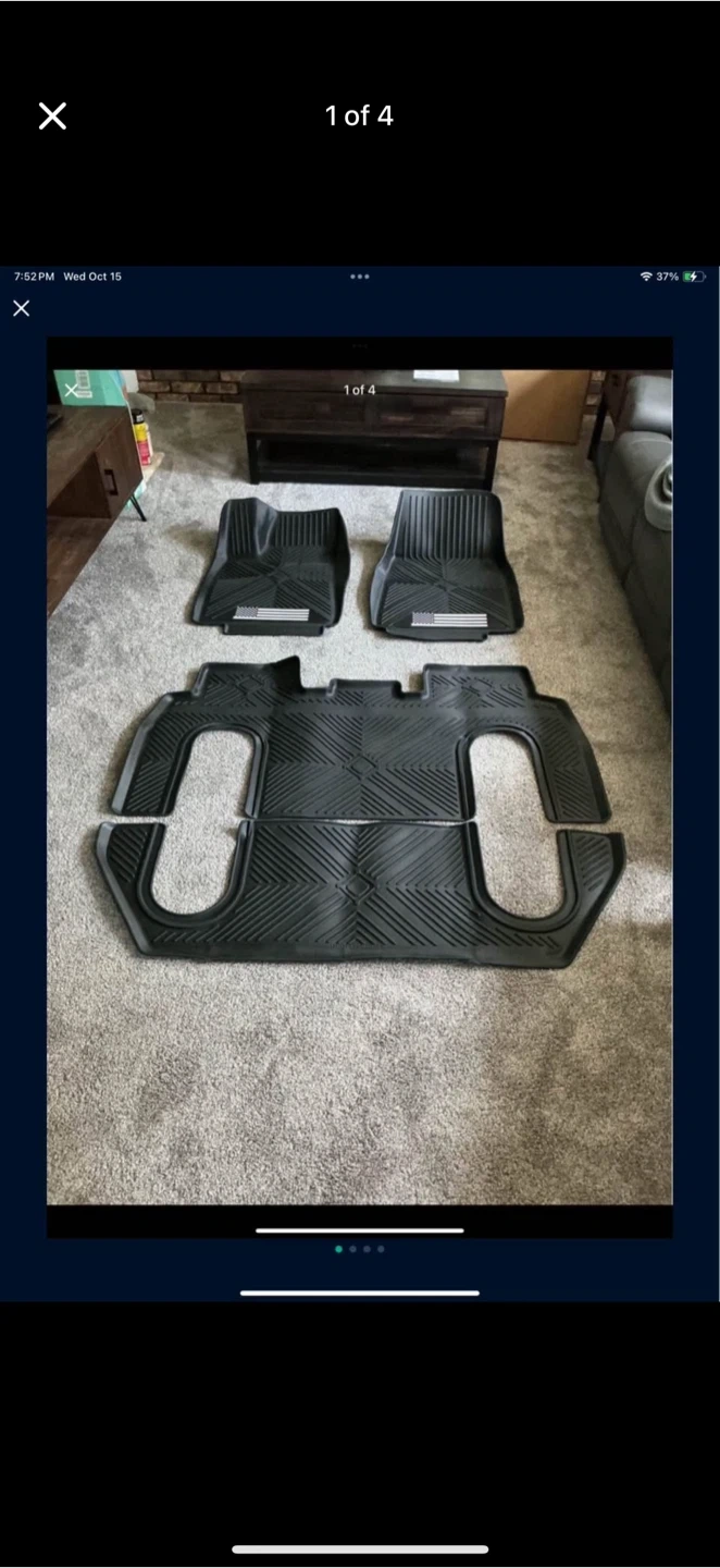 65New Torcia American flag all weather floor liners Flags are held in place with Velcro so they can be removed or changed Fits 2015–2020 Tesla Model X 6 seater First, second and third row coverage Located in Plainfield IL $90 obo