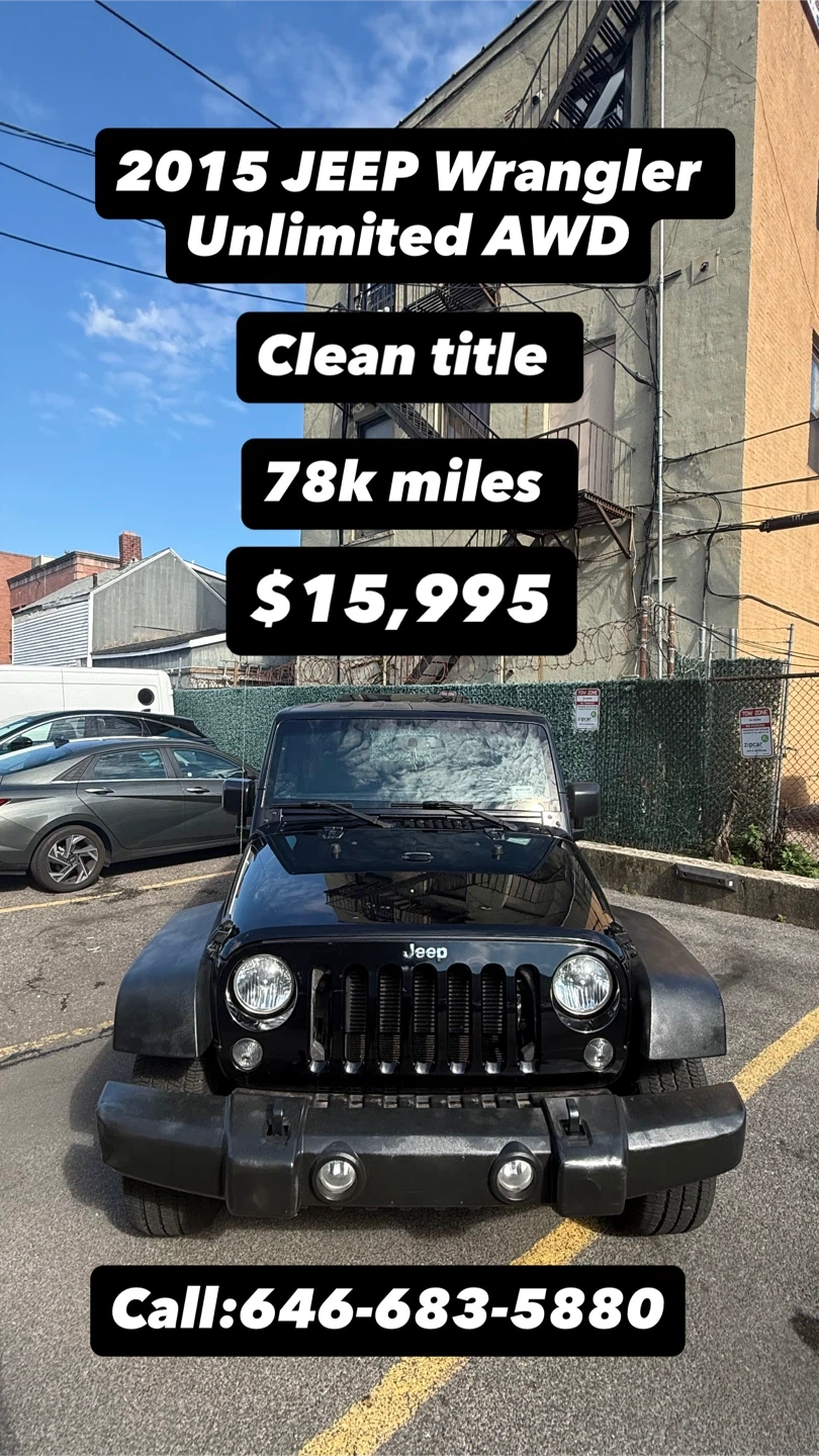 2015 JEEP WRANGLER UNLIMITED SPORT 4WD 78K Miles **Clean title** Runs and drives great. Alpine sound system detachable doors back door front engine. 2 keys $15995 CASH PRICE