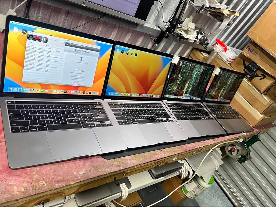 Selling 4 MacBook Pro 13” 2020 models at $380 each. These are the upgraded 2020 Models with the 16GB and 500Gb upgrades along with the additional usbc ports, 4 total. 2.0GHz core i5 processor. All have passed a full diagnostic and have a clean bill of health. They will come each with an apple usb-c charger. They are free from any locks and are free and clear for its new users. Cosmetics vary, they shows some wear for normal use but overall in good shape. No sticky keys, blown speakers or any other issues. They will come with a clean reset and install of the OS and will include some useful apps like word,excel and a few other for video and music editing. Pick up at safe location in manhattan and you may test before purchase Thanks for looking