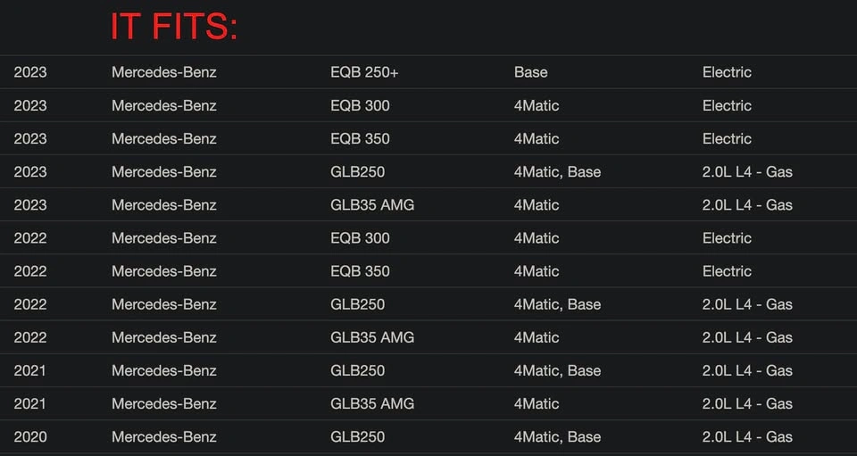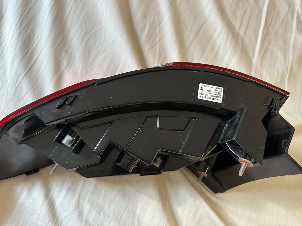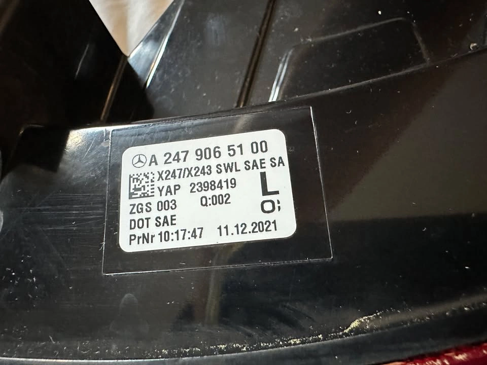 762022 MERCEDES BENZ EQB/GLB X243/X247 REAR LEFT QUARTER MOUNTED TAIL LIGHT ASSEMBLY OEM LENS: CRACKED (see photos) CONDITION: USED MOUNTING TABS: NO BROKEN TAB GUIDE: NO BROKEN HOUSING: GOOD CONDITION BULBS: INCLUDED All LED lights work. I replaced the light assembly after the glass cracked and selling the old one that still works. Genuine Mercedes-Benz Part!