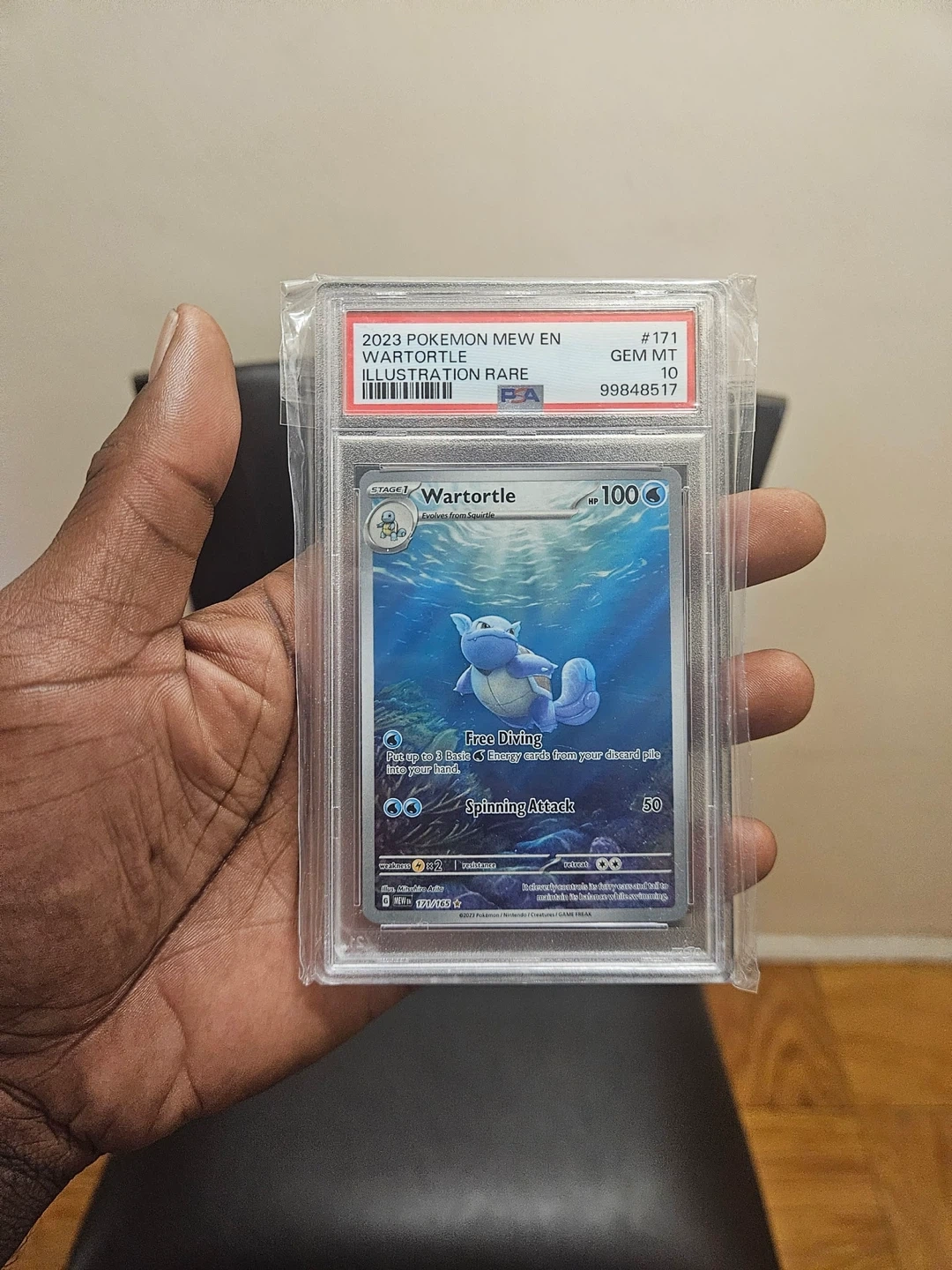 10Selling a 2023 Pokemon Mew En Wartortle Illustration Rare card. It's been graded a GEM MT 10 by PSA.