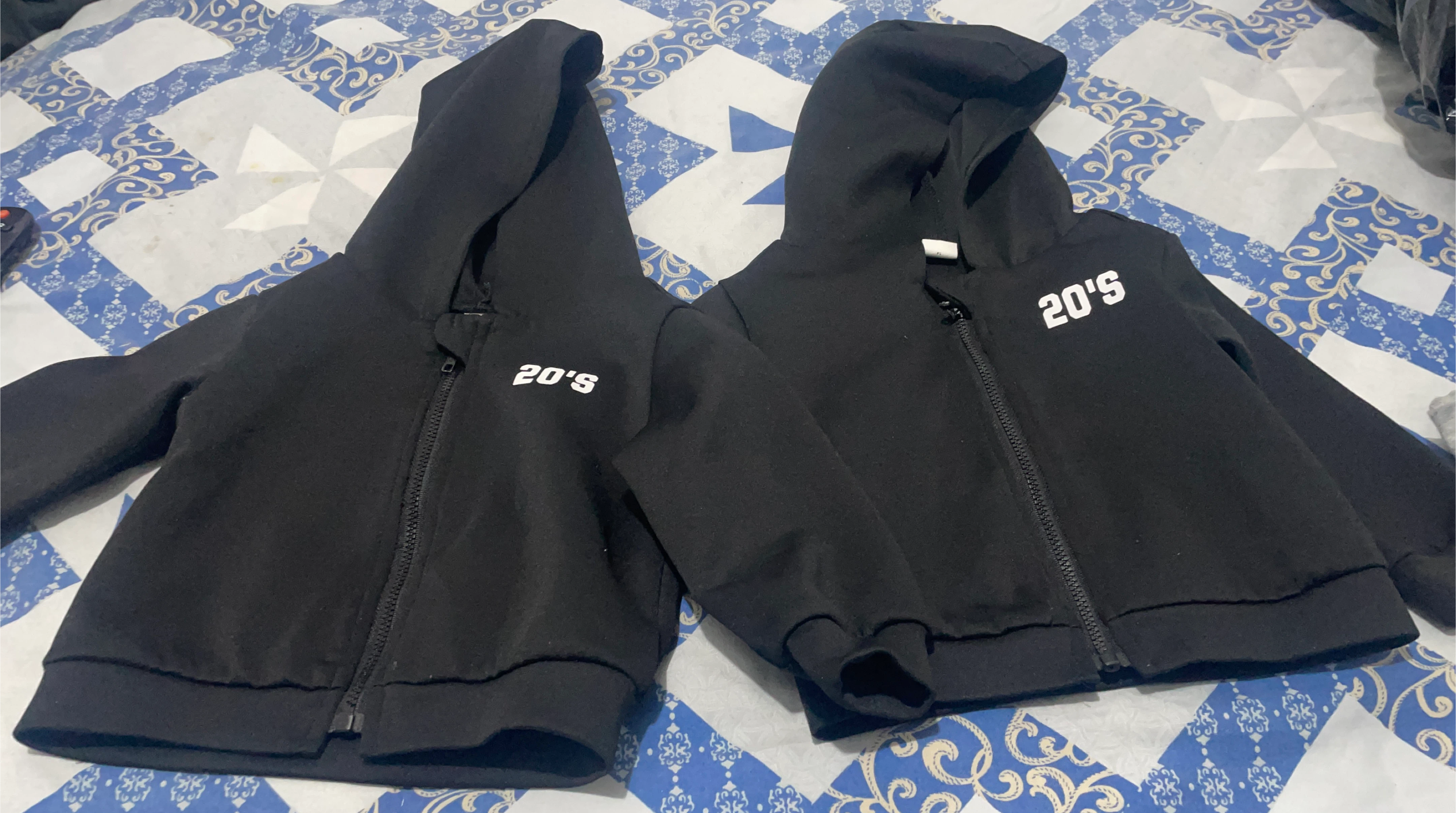10Selling a black zip-up hoodie with '20's' printed on it. It's in good condition and ready for a new home!