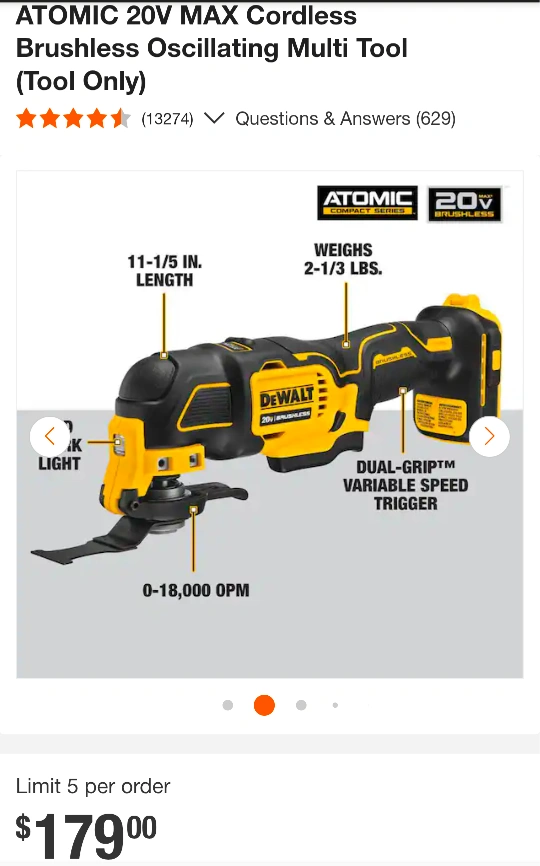 Show all20V Max DeWalt ATOMIC Combo + XR Drywall Cut Off Tool