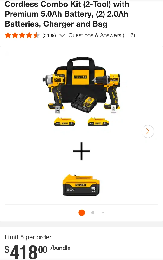 Show all20V Max DeWalt ATOMIC Combo Kit + 5AH XR Lithium Battery Pack