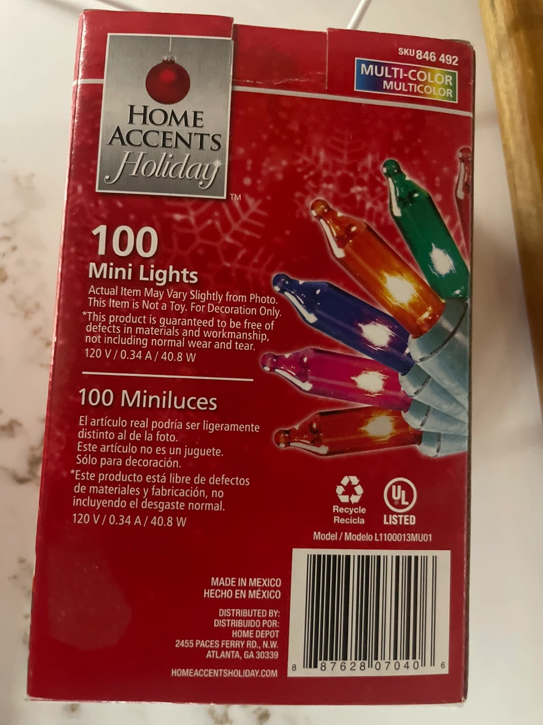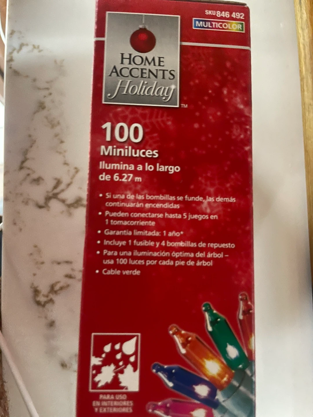 Selling a box of Home Accents Holiday 100 Mini Lights! They are multicolor and perfect for decorating. The box includes 1 fuse and 4 replacement bulbs. The model number is L1100013MU01