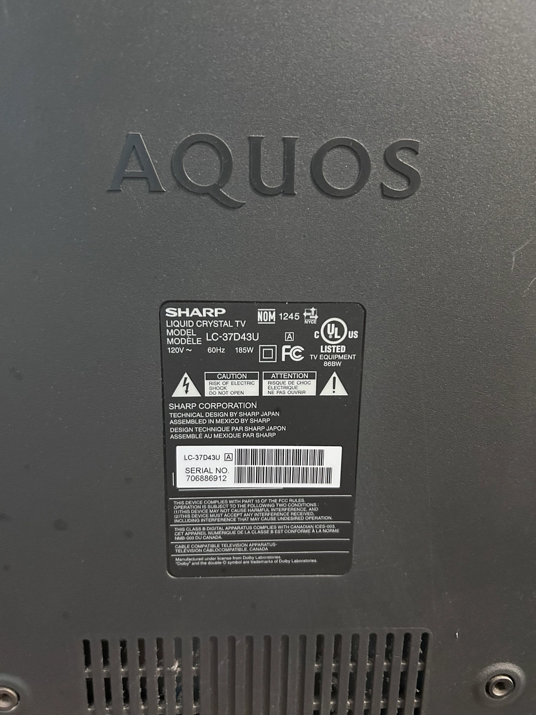 Sharp liquid crystal 37” AQUOS LCD HDTV