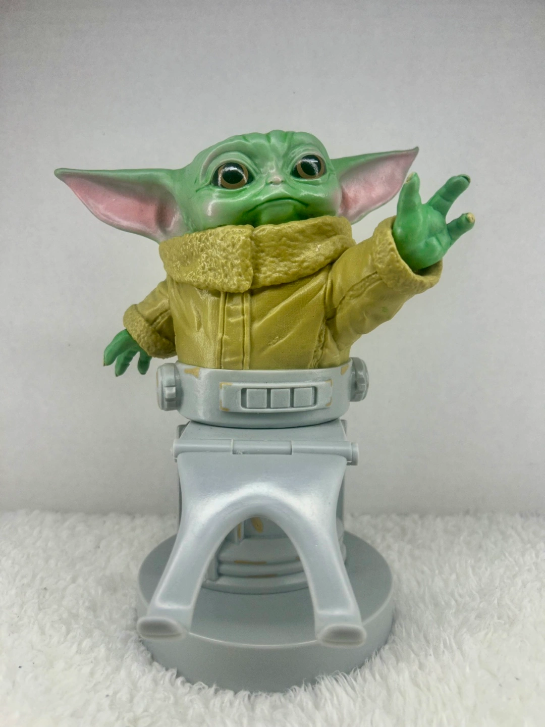 109*Bottom of figure has glue marks. Figure quality and condition is not affected, new condition.* THE CHILD: Presented in a classic bust format and using The Force to hold your device, 8" FIGURE: Heavy duty PVC statue and sturdy base that holds your stuff without tipping over. VERSATILE: Easily holds and displays most hand-held electronics, business cards, TV remotes, eBook readers, etc! GREAT GIFT IDEA: A must-have collectible figure for all watchers of The Mandalorian series. OFFICIALLY LICENSED: Your favorite pop culture characters - With A Purpose! Officially licensed by Lucasfilm, styled on The Child. Compatible with keyboards, Laptops, Projectors, Smartphones, Television, Gaming Consoles, Smartwatch, Desktop, Telephones, Camera, Tablets, Headphones, Printers, Speakers, E-reader, Business Cards, TV Remotes, eBook Readers, PlayStation 5 DualSense, Xbox Series S/X, iPhones.