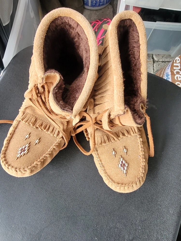 Beautiful Mukluks,that are very comfortable and stylish,great price for this type of craftmanship. Indigenous made.