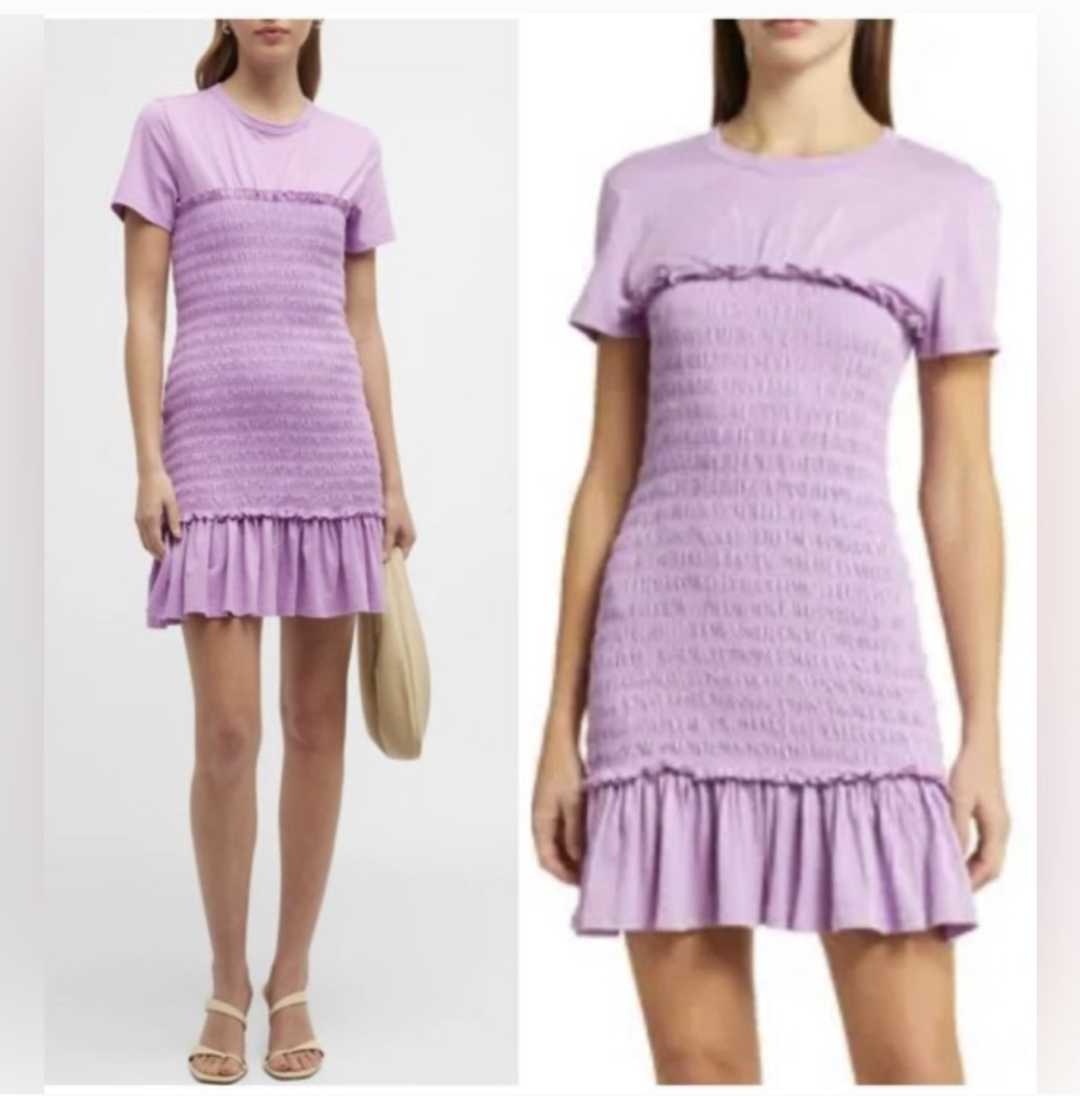 lilac color retails for 298 fits size 6-8 body length 35" from shoulder form fit smocking has some stretch great for spring and summer!!! 100 percent cotton