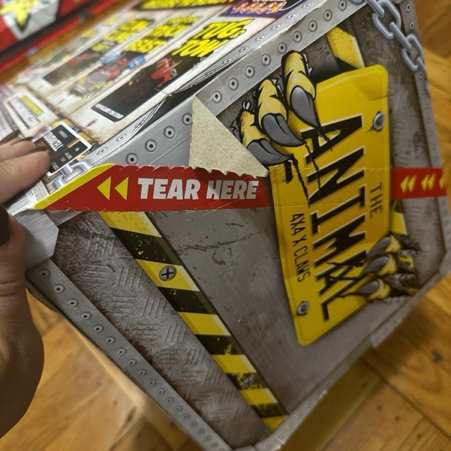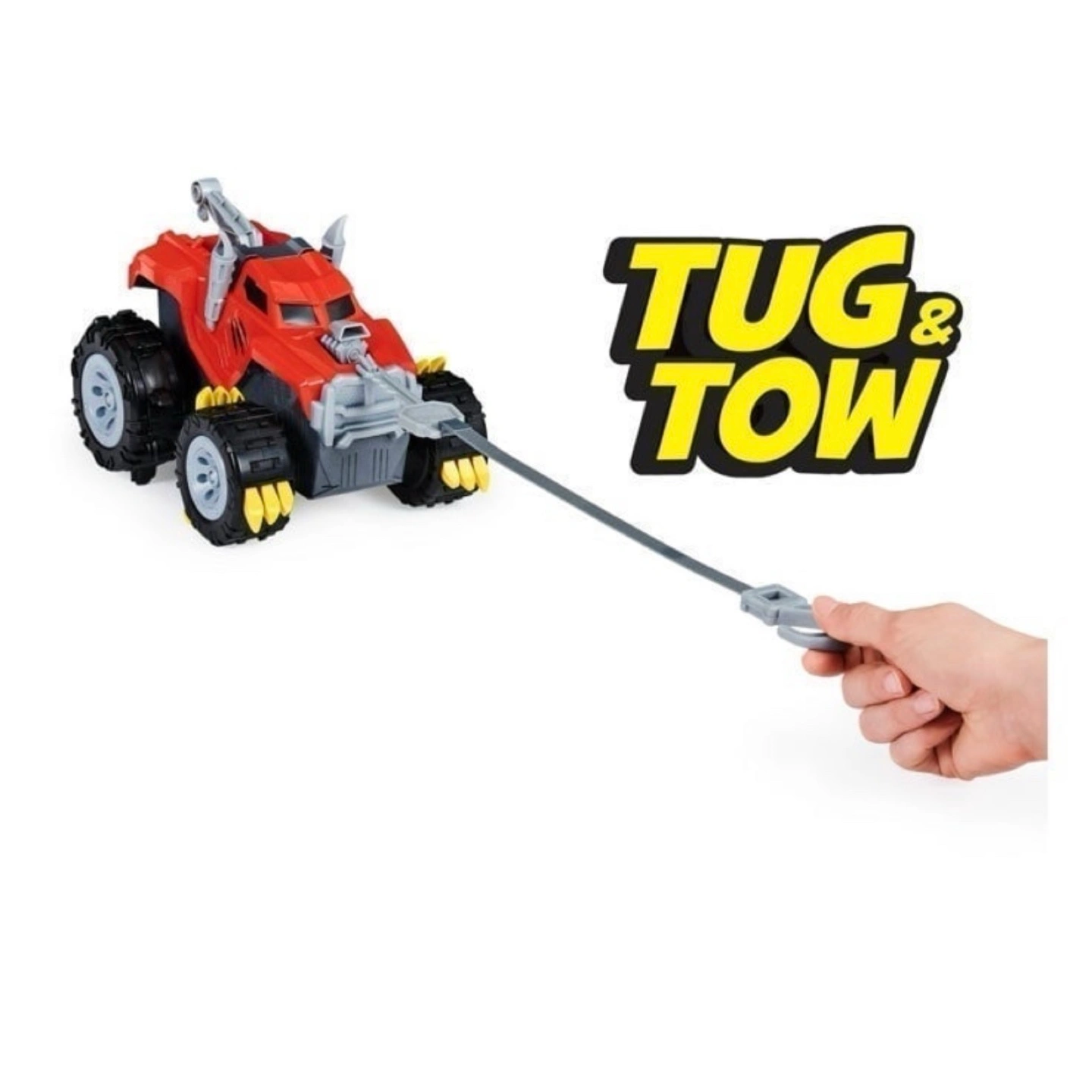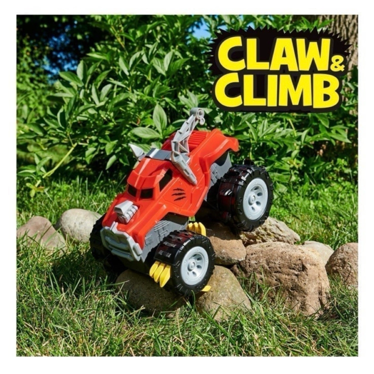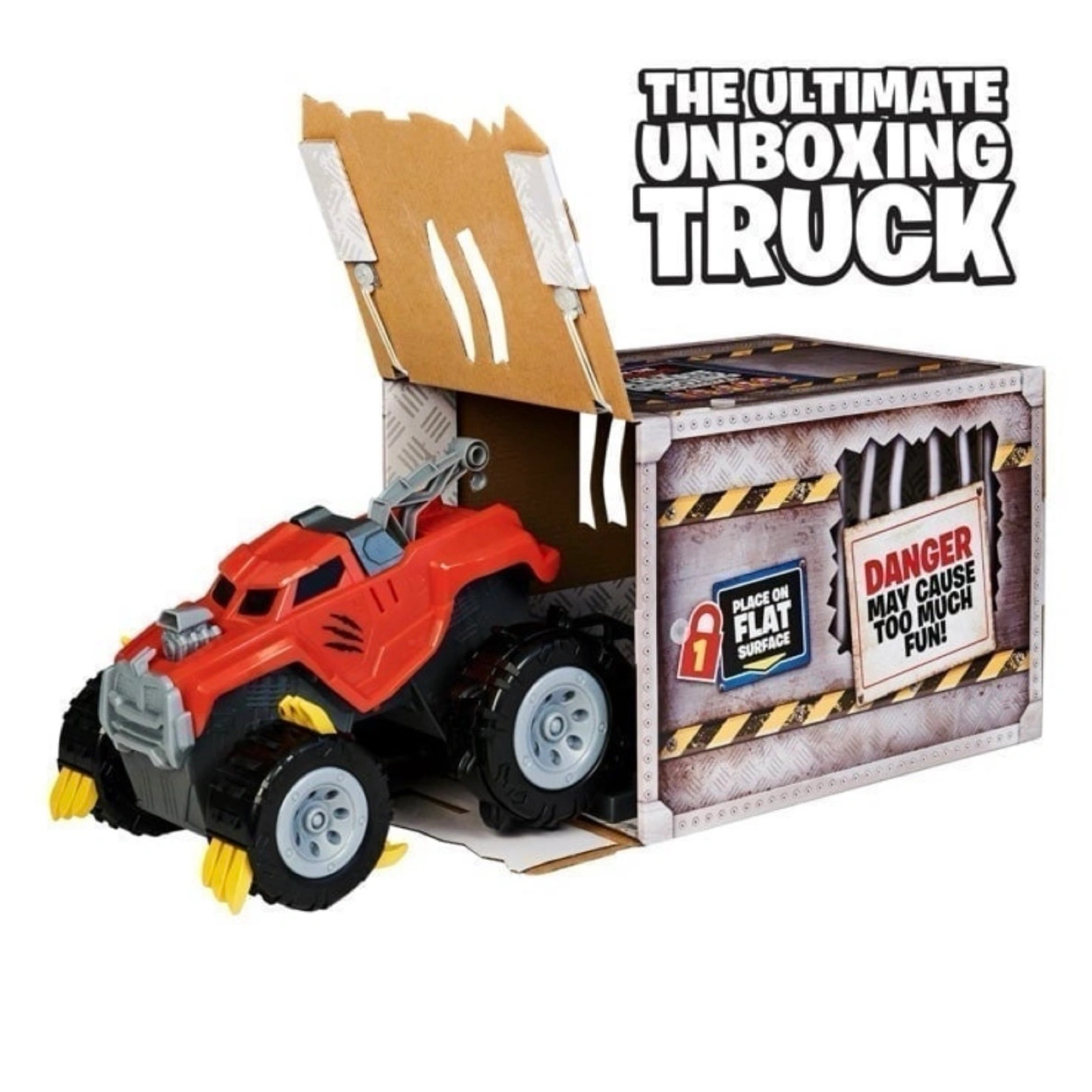 Red monster truck toy. Claw and climb features. Tear apart the box to reveal the truck inside. Great for kids who love monster trucks and unboxing experiences.