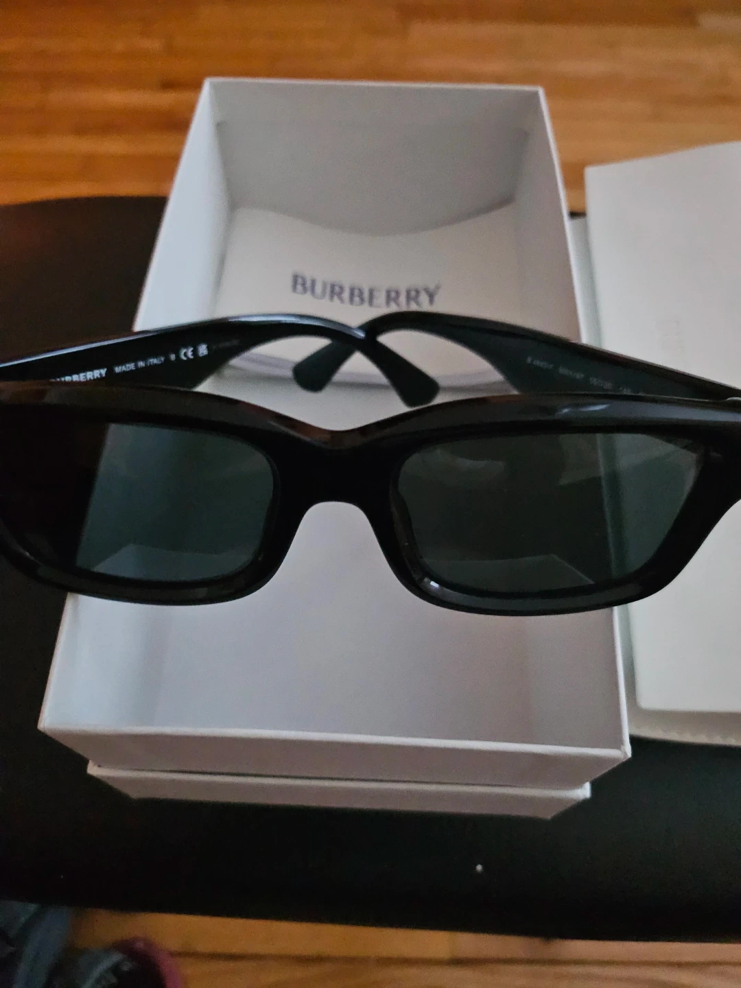 Burberry sunglasses with a black frame. Includes original box and case. Made in Italy.