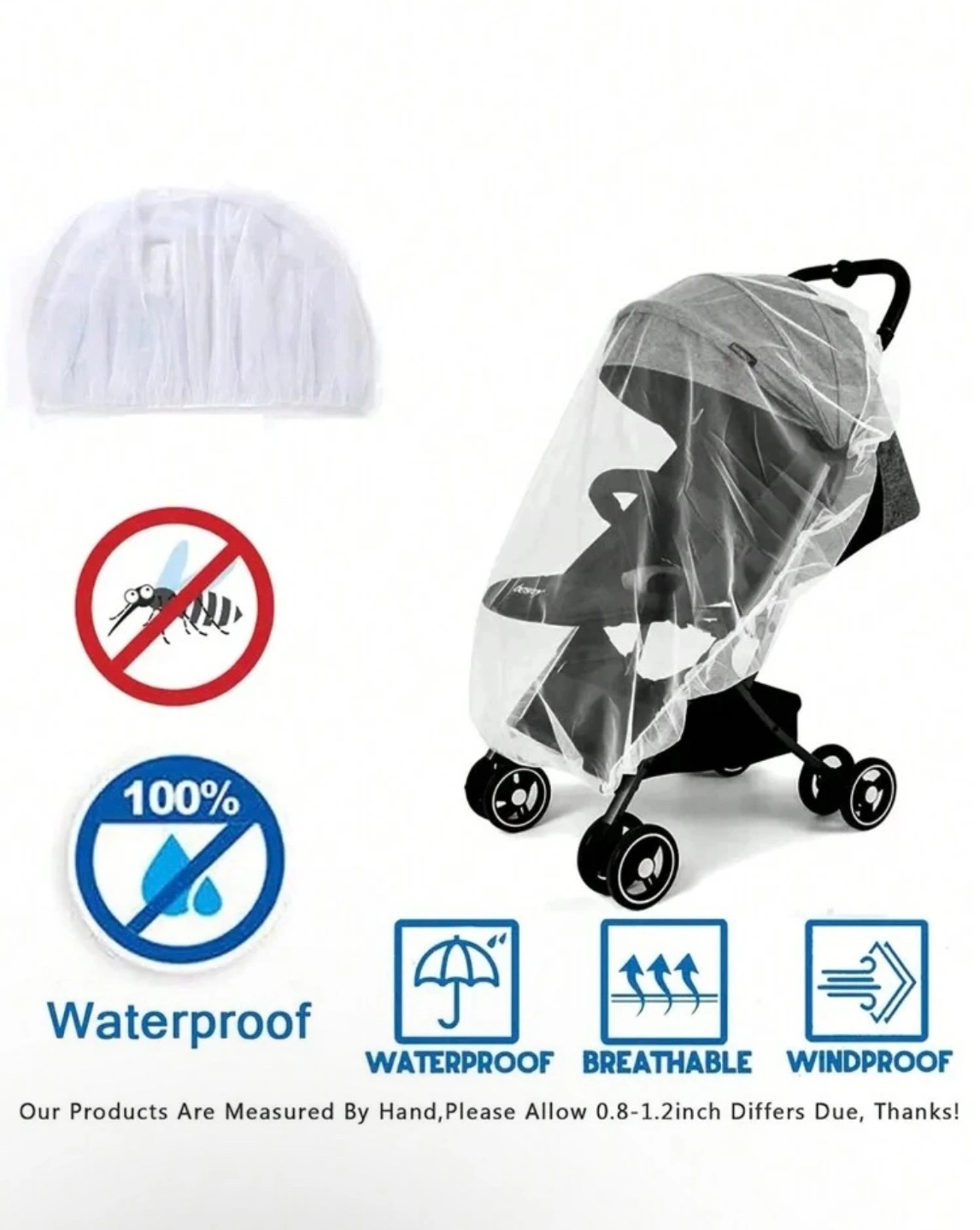 Stroller mosquito net. Made of mesh. Waterproof, breathable and windproof. Fits most strollers. New, never used.