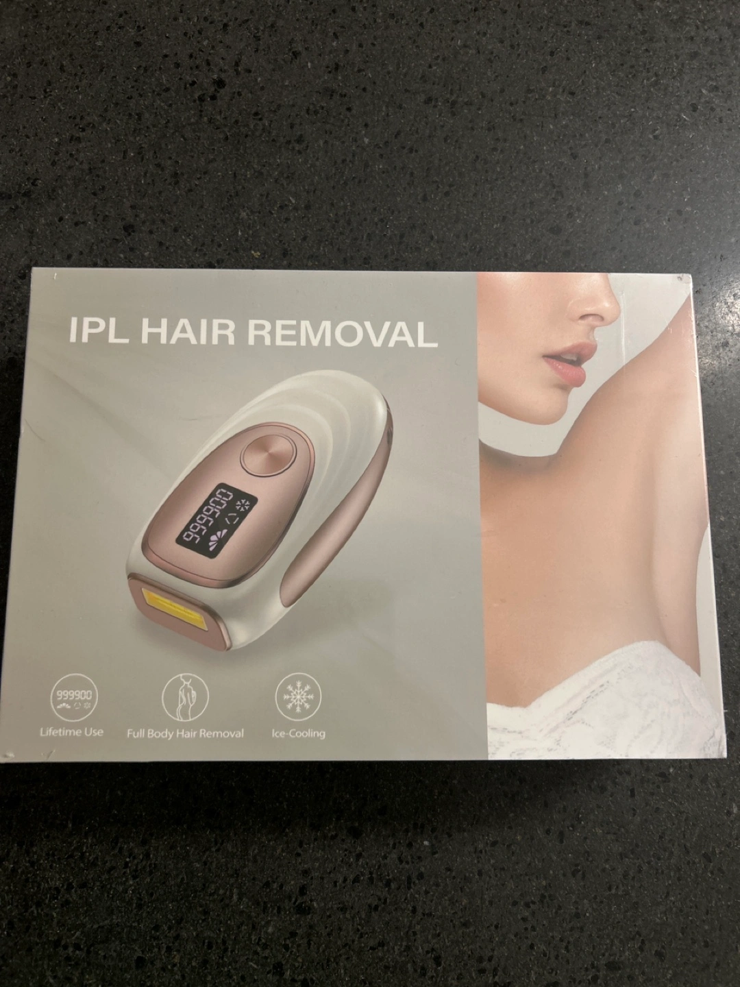 I'm selling a brand new IPL hair removal device! It's never been used and comes in its original box. This device is designed for lifetime use and full body hair removal, and it even has an ice-cooling feature for added comfort