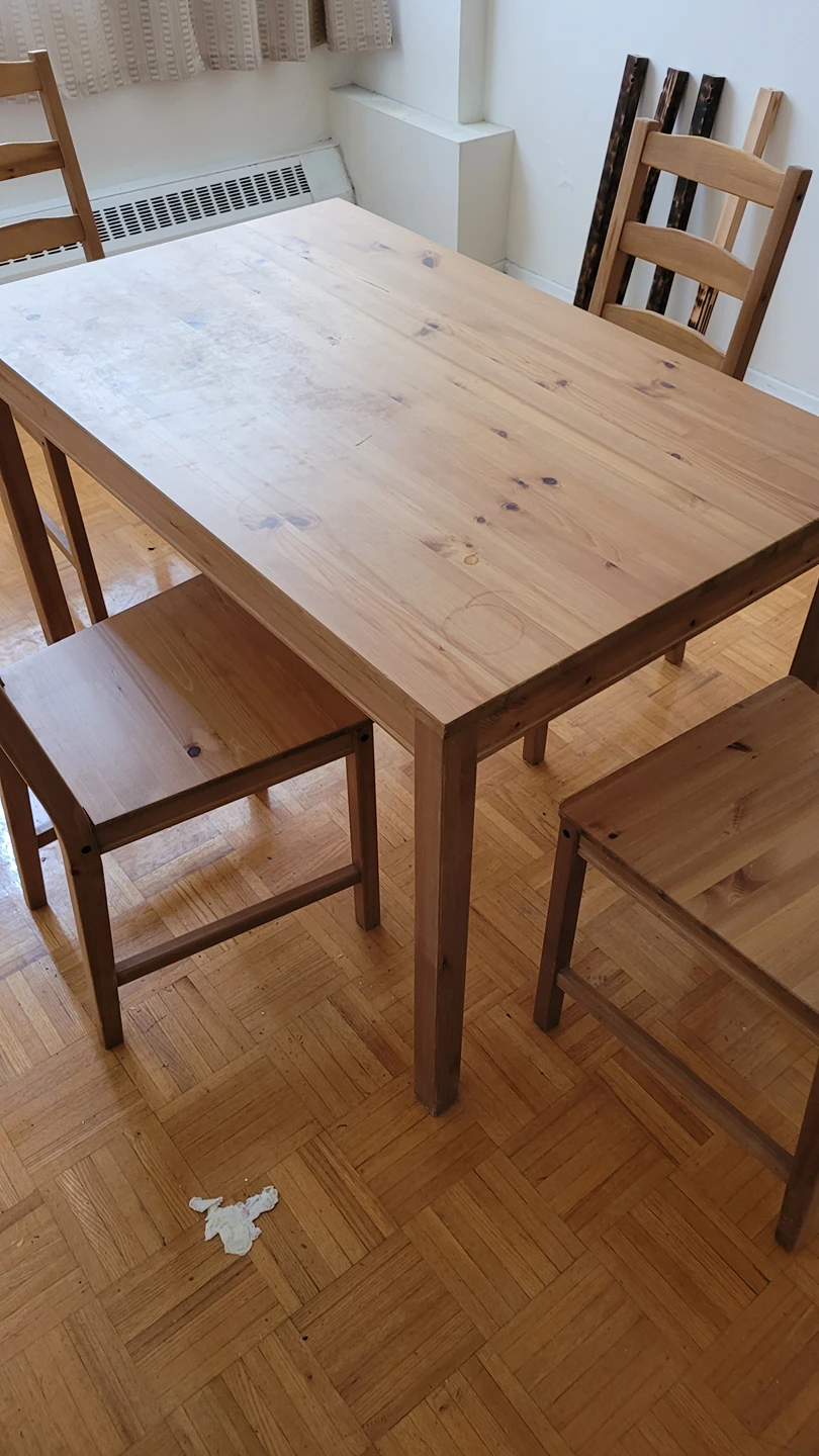 35Selling dining table with chairs Any questions feel free to contact Table and chairs $80.00 Table only $50.00 Price negotiable Hieght 29 inches Length 46.5 inches Width 29 inches